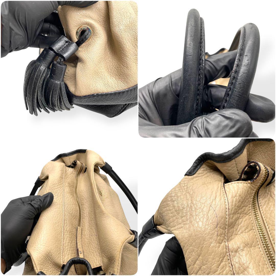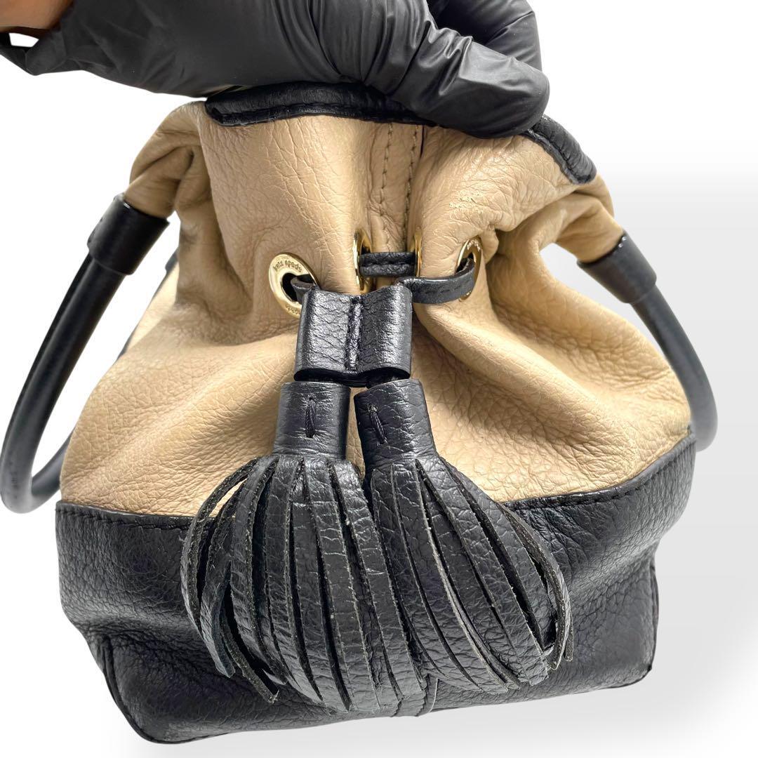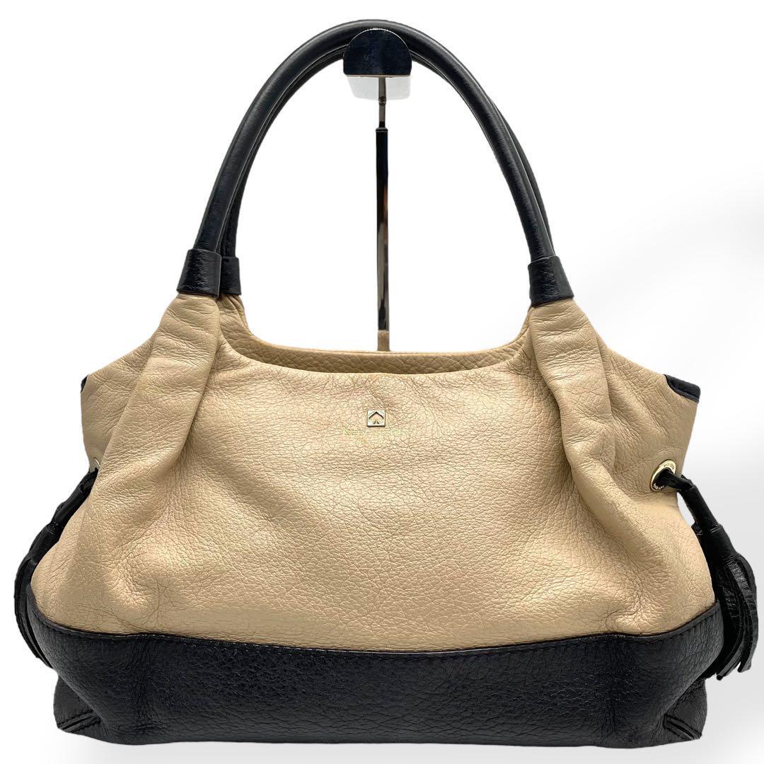 美品 Kate Spade ケイトスペード ハンドバッグ バイカラー レザー ブラック ベージュ