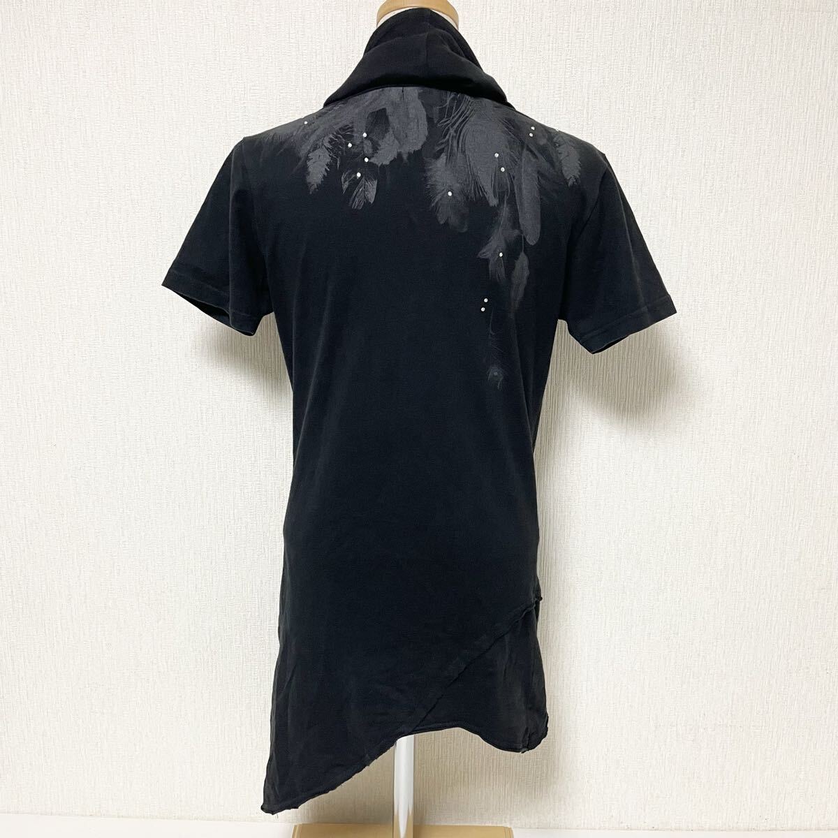 即決☆civarize シヴァーライズ ラインストーン フェザープリント 半袖 Tシャツ アシンメトリー ドレープネック 44 ブラック M y2k