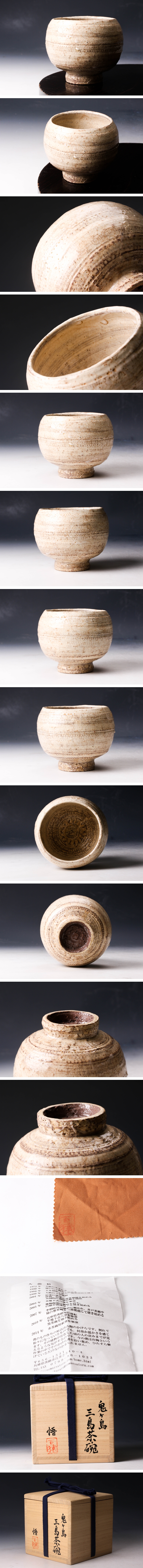 【佳香】大前悟 鬼ヶ島三島茶碗 共箱 共布 栞 茶道具 本物保証
