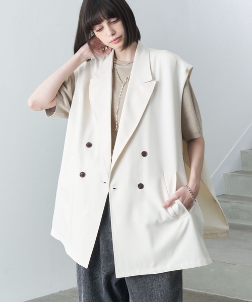 参考商品名:【Alfred Alex】drape side ring code double gilet / TR-TWドレープサイドリングコードダブルジレベスト【セットアップ対応】