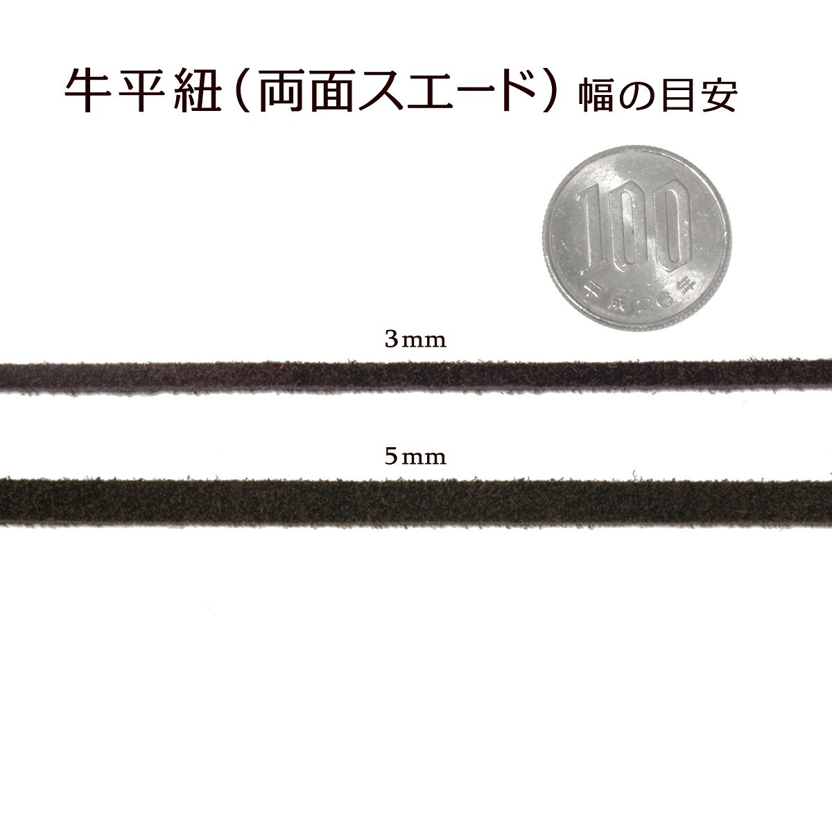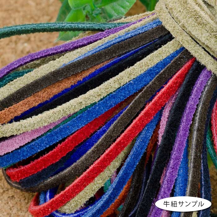 | 表面・裏面共にスウェード起毛加工が施された牛皮の平紐です。首の後ろで結んでネックレスとしたり、その他アイディア次第で色々なご用途にお使い頂ける革紐です。※日本製の素材を国内で加工した純日本製の紐です。 |
