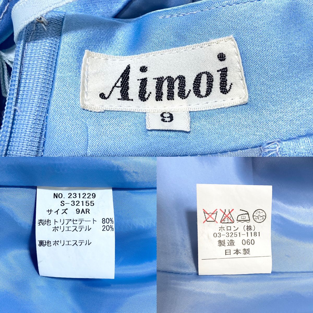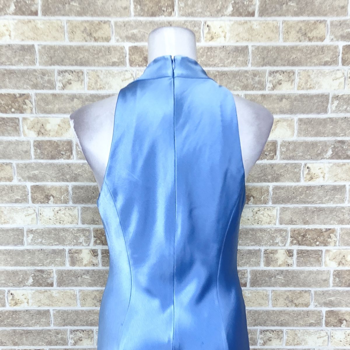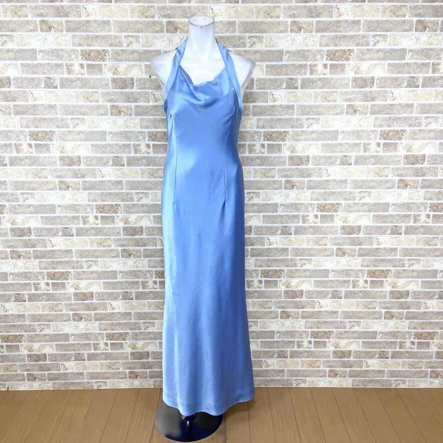 1円 ドレス Aimoi ロングドレス 9AR 青系光沢 カラードレス キャバドレ 発表会 イベント 中古13619