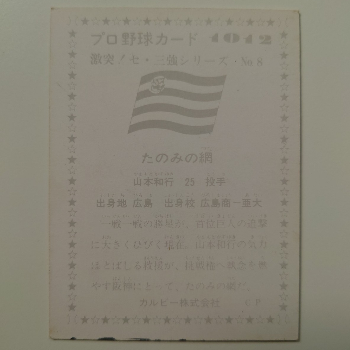 カルビー プロ野球カード 1976年 No.1012 激突!セ・3強シリーズNo.8 たのみの綱 阪神タイガース 山本和行