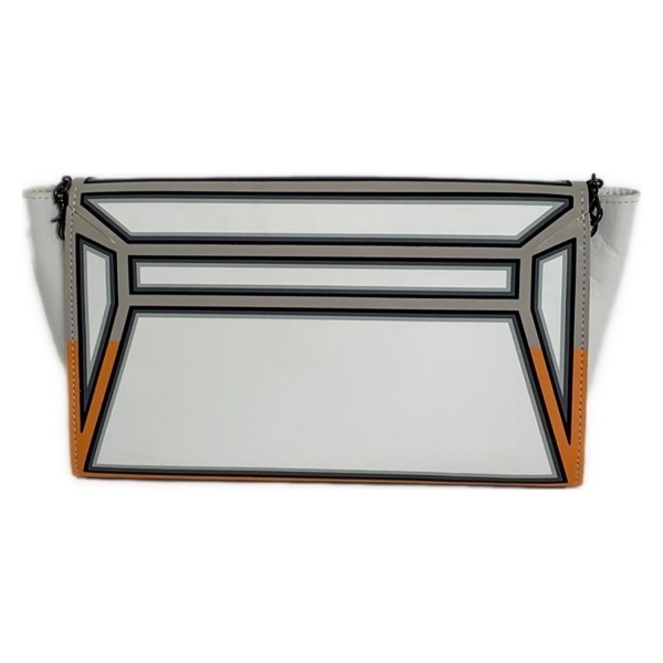 イッセイミヤケ ISSEYMIYAKE ショルダーバッグ ガストン レザー 白×オレンジ×マルチ チェーンショルダー 美品 バッグ