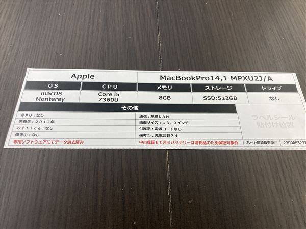 | MacBookPro 2017年 MPXU2J/A【安心保証】 |