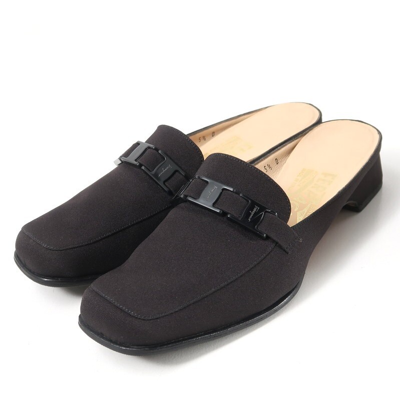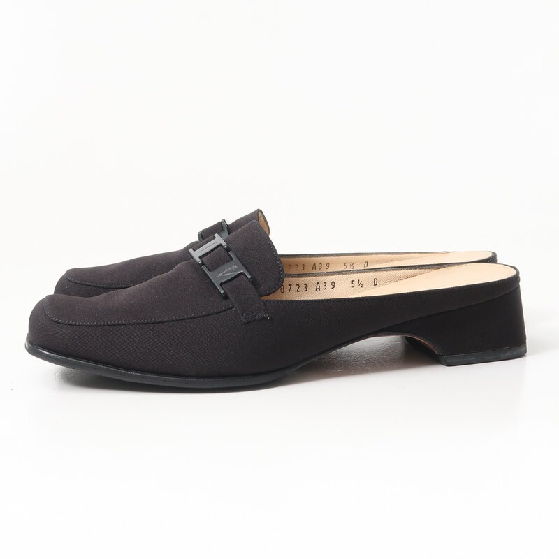 | MH8864*イタリア製 サルヴァトーレフェラガモ 5.5D(22.5cm相当) スクエアトゥ ミュール パンプス 靴 ブラック Salvatore Ferragamo | |||