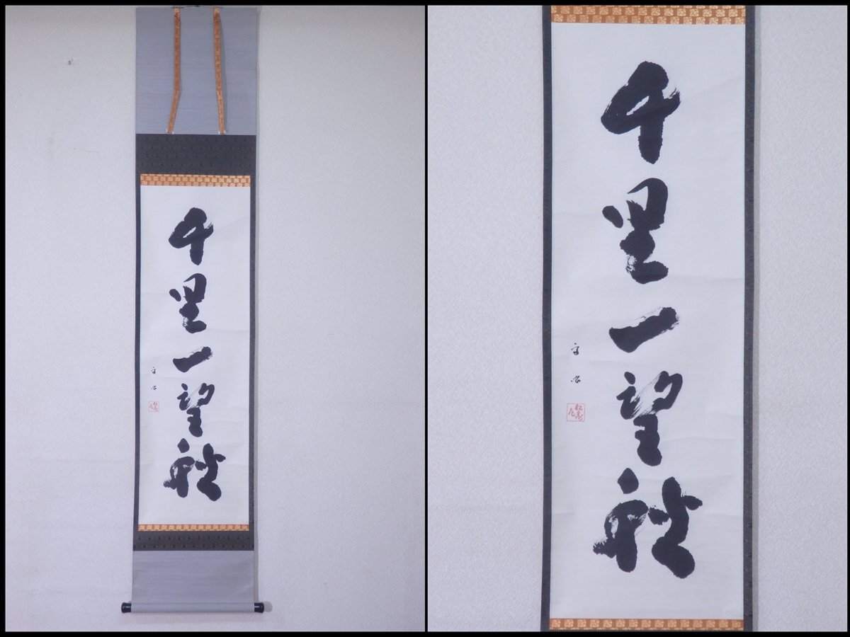 ★一行書 肉筆【掛軸『千里一望秋』在判箱】紙本 松寿庵/朱印 幅36.7×全長179.3cm 茶道具 茶掛け セール!