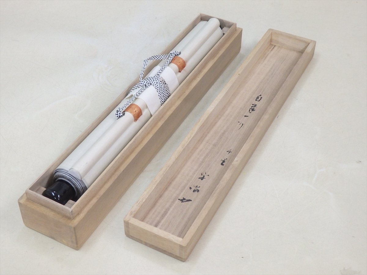 【管理番号5-0820176-8 スタッフコメント:iy】  ☆シミはあまり無いですが、シワがわりと多いです。紙本、肉筆、風帯付き、軸先は塗り、共箱入り。シミや経年のヤケ等、多い場合もございます。 コンディションはご理解のうえノークレームノーリターンでお願いします。
