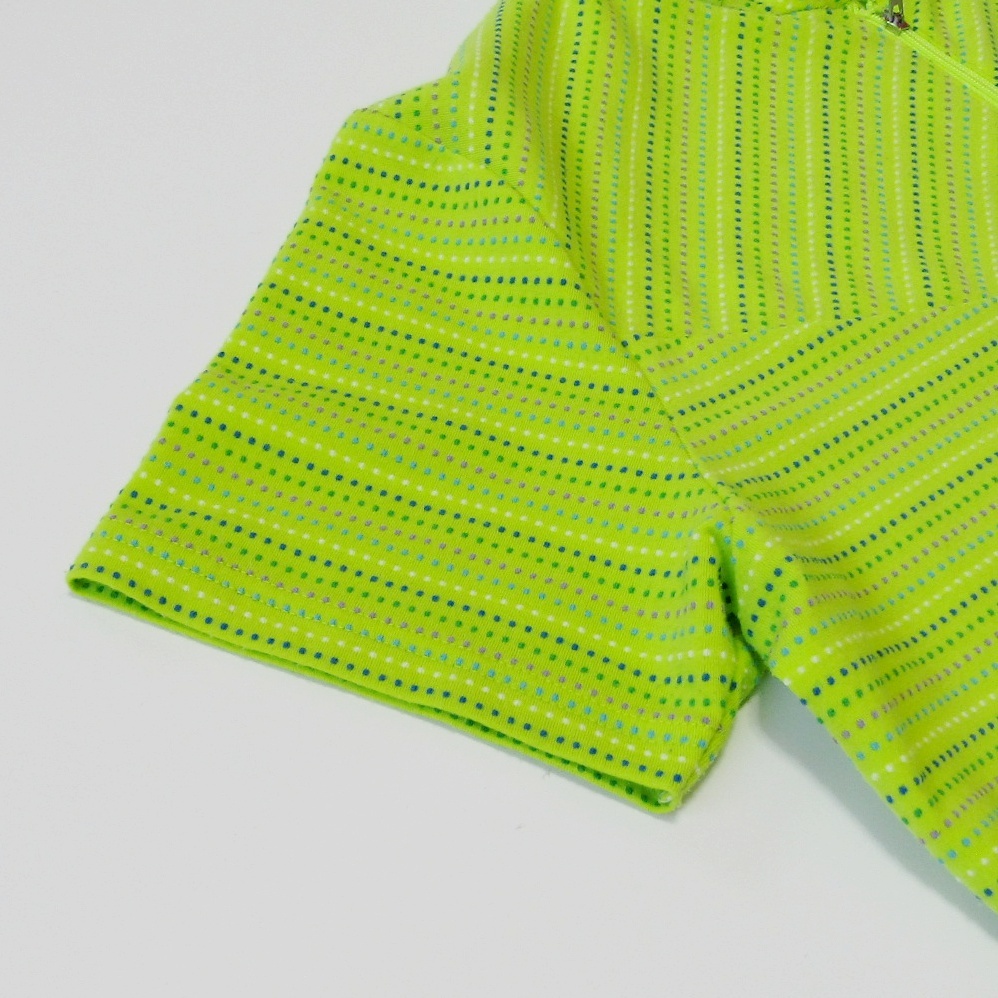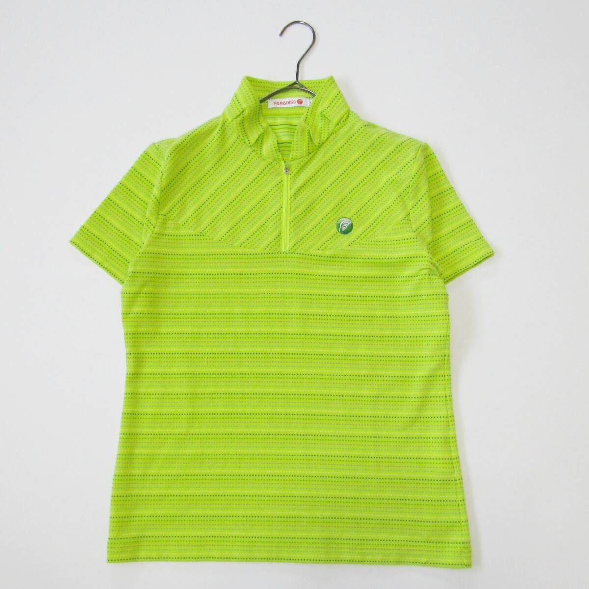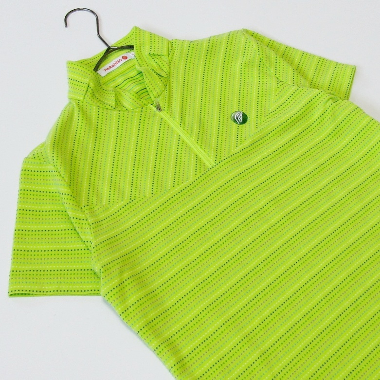 鮮やかなライムイエローが目を引く、PARADISO(パラディーゾ) のレディース用ドット柄ジップシャツです。