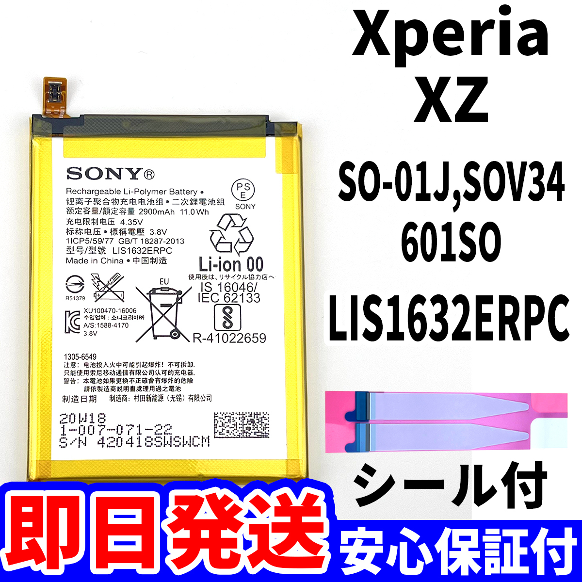 ★Xperia XZ バッテリー交換 SO-01J SOV34 601SO LIS1632ERPC 電池パック交換キット battery repair 電池交換専用両面テープ 電池単品 工具なし★