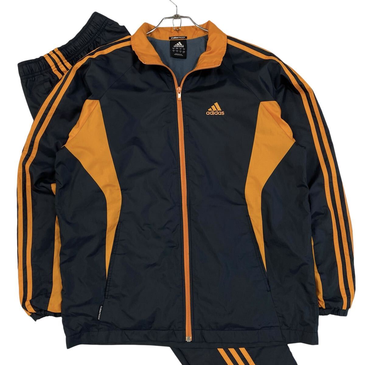 【adidas(アディダス)ウィンドトップパンツセット セットアップ 刺繍ロゴ メンズM ブラック/オレンジ系】