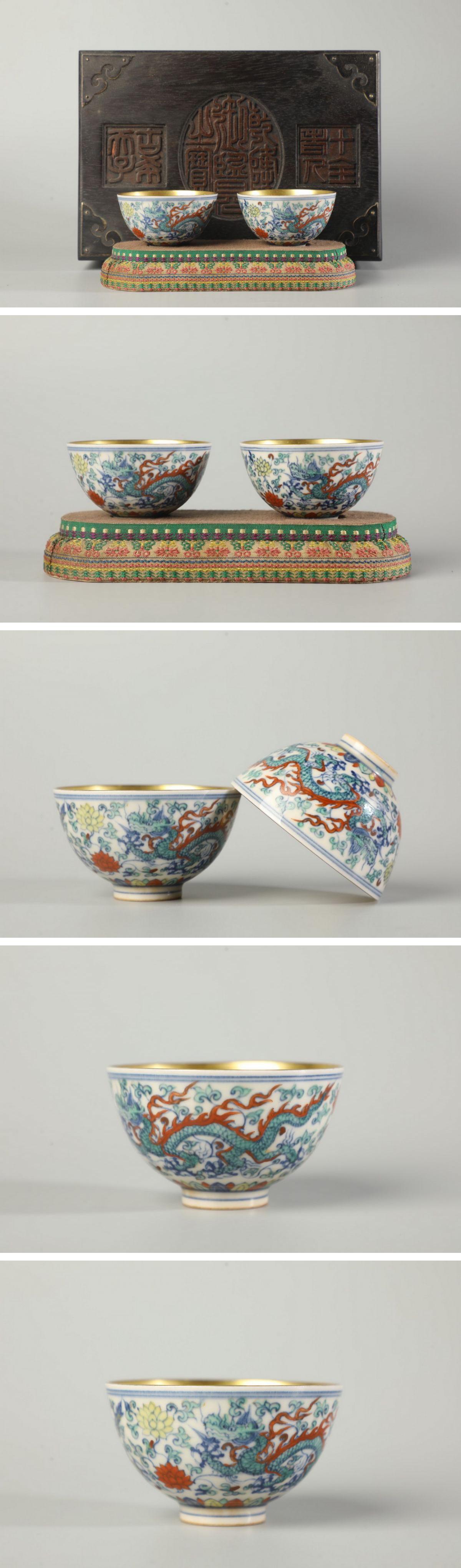 【清】某有名オークション購入 明時代 大明成化年製 斗彩雲龍紋賞杯 古置物 古擺件 中国伝来 古美術 時代コレクション7L8-TH4