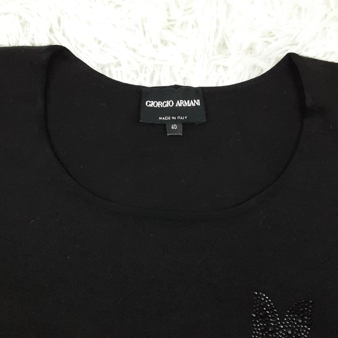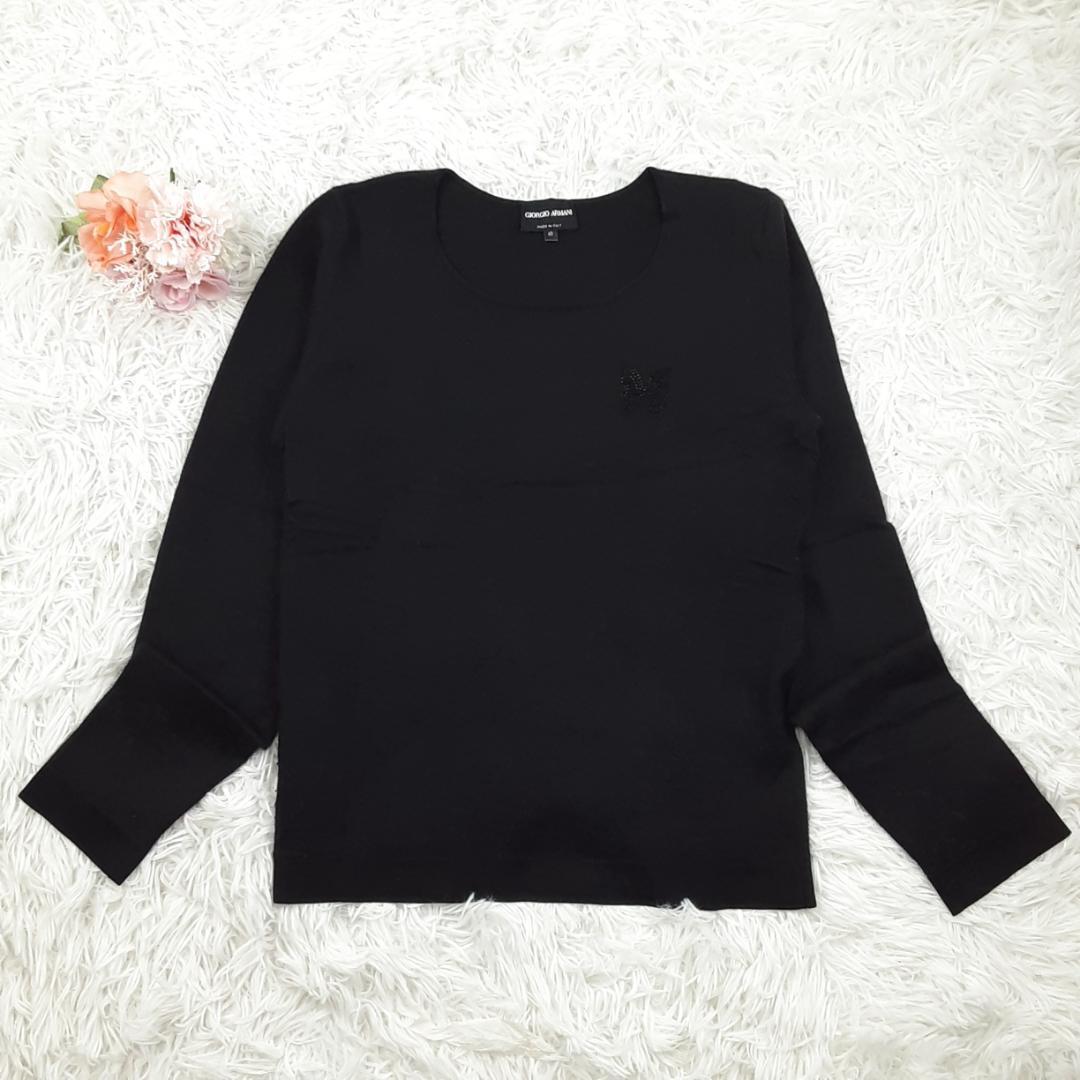 美品◎Giorgio Armani ジョルジオアルマーニ 長袖ニット セーター ブラック 黒 レディース カシミヤ混 ラインストーン付き イタリア製 MADE IN ITALY