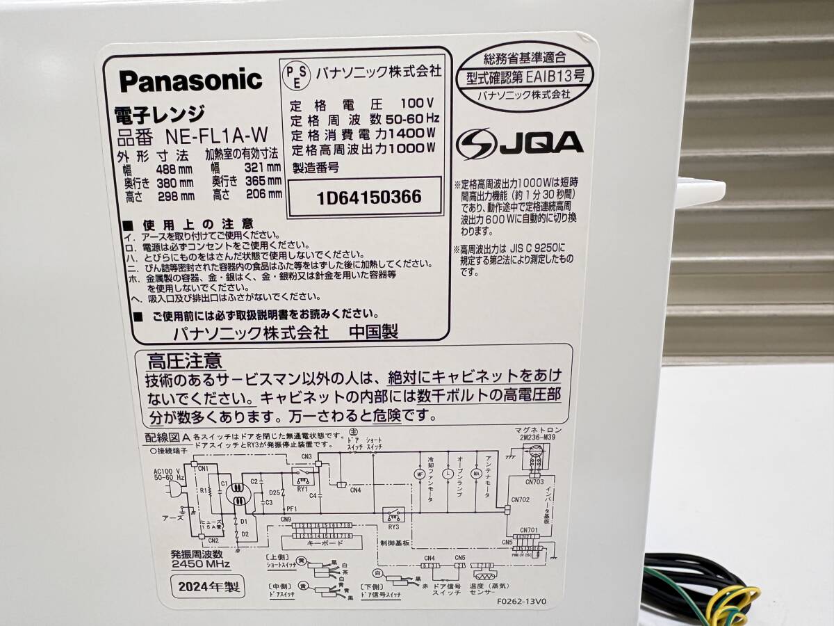 K-884 美品★Panasonic★電子レンジ NE-FL1A-W 24年製 動作確認済み 中古品