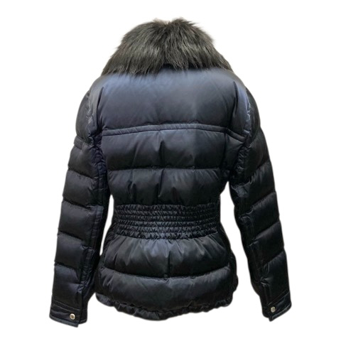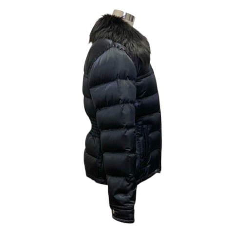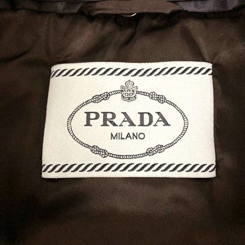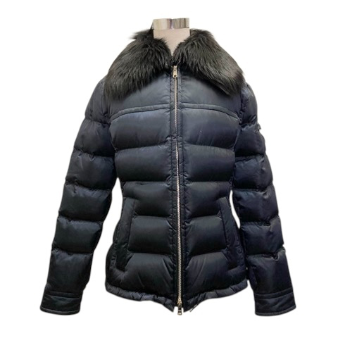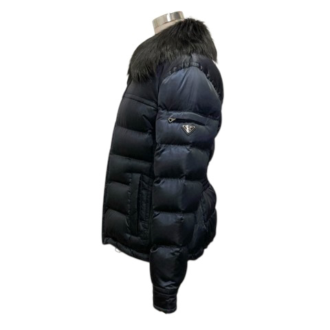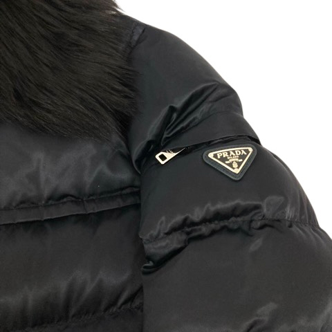 プラダ PRADA ダウンジャケット ブルゾン フェザー混 ファー ワンポイントロゴ 44 黒 ブラック レディース