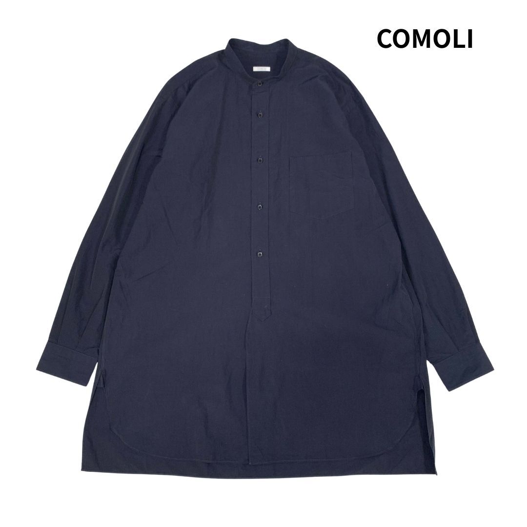 COMOLI コモリ 23AW BAND COLLAR SHIRT バンドカラーシャツ/Y03-02002/ネイビー 3/長袖 ロングシャツ シャツ スタンドカラー コモリシャツ
