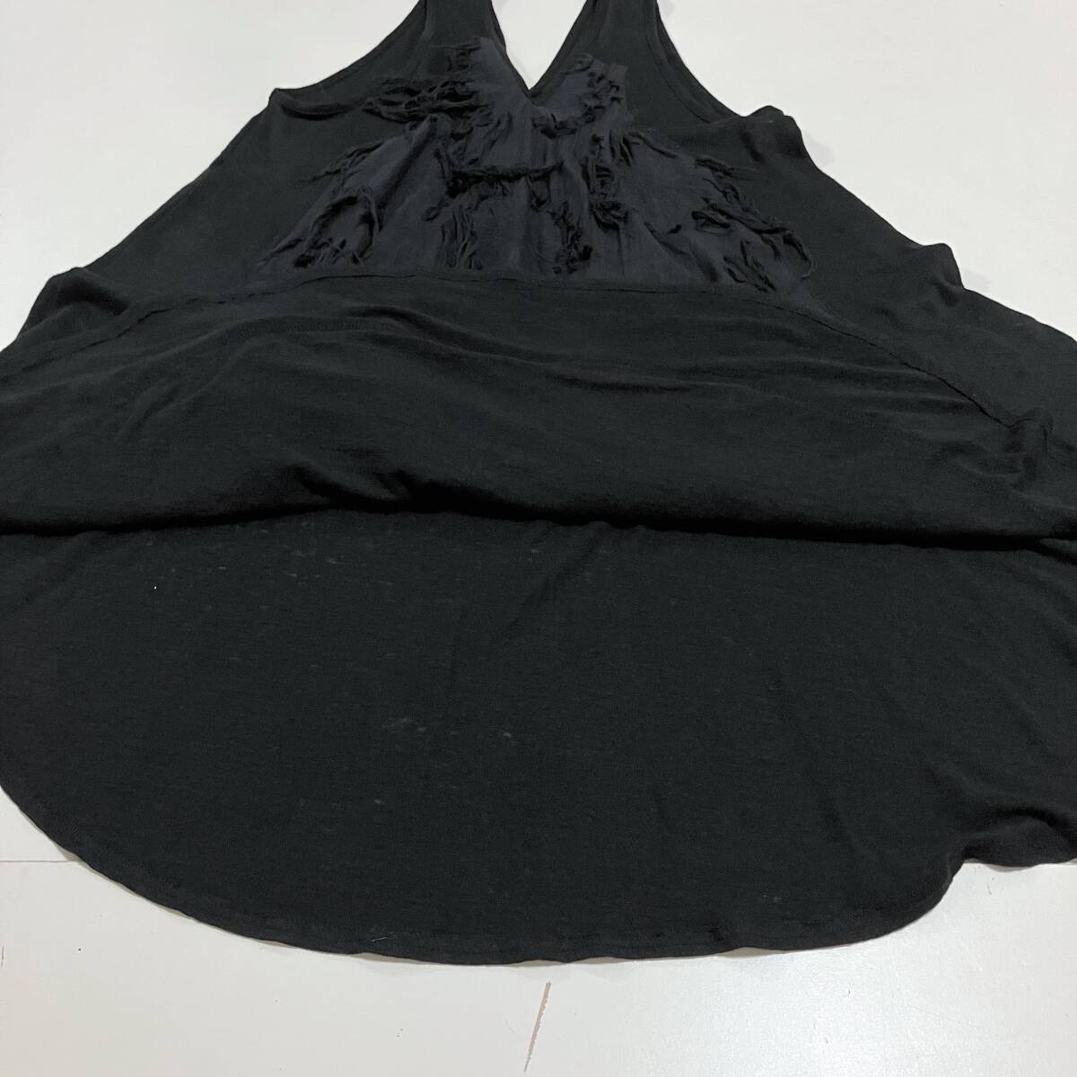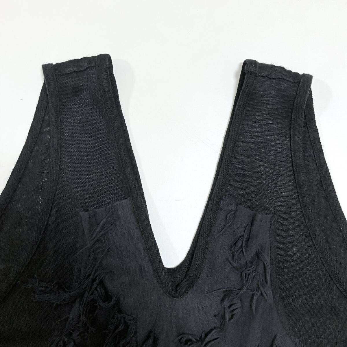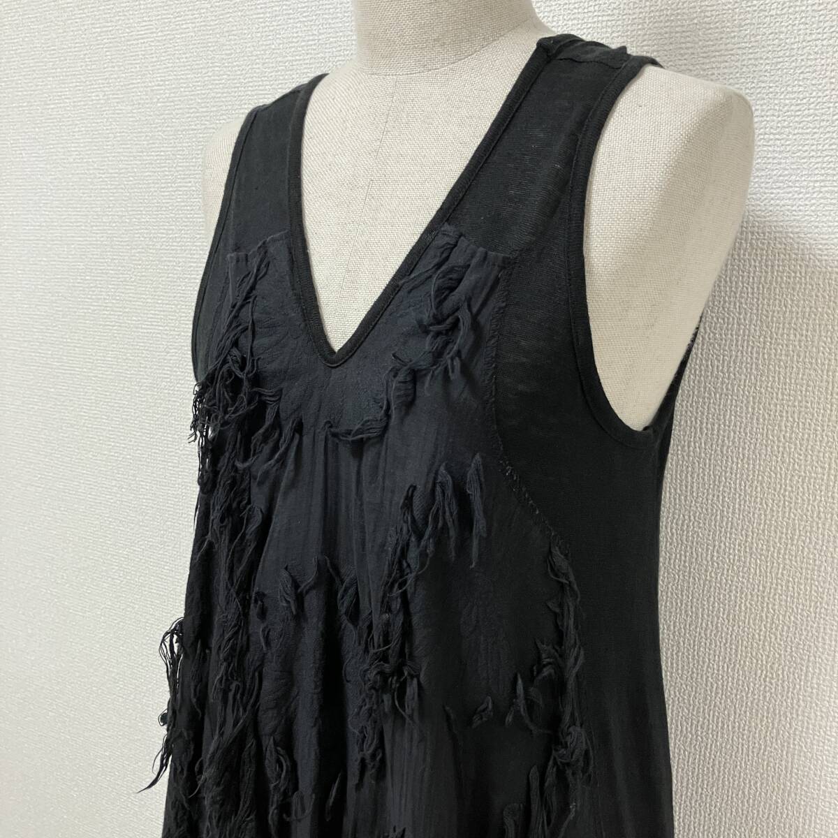 Y's Yohji Yamamoto リネン 花柄 ジャガード フリンジ ノースリーブ カットソー チュニック 黒 ワイズ ミニ ワンピース archive 5080222