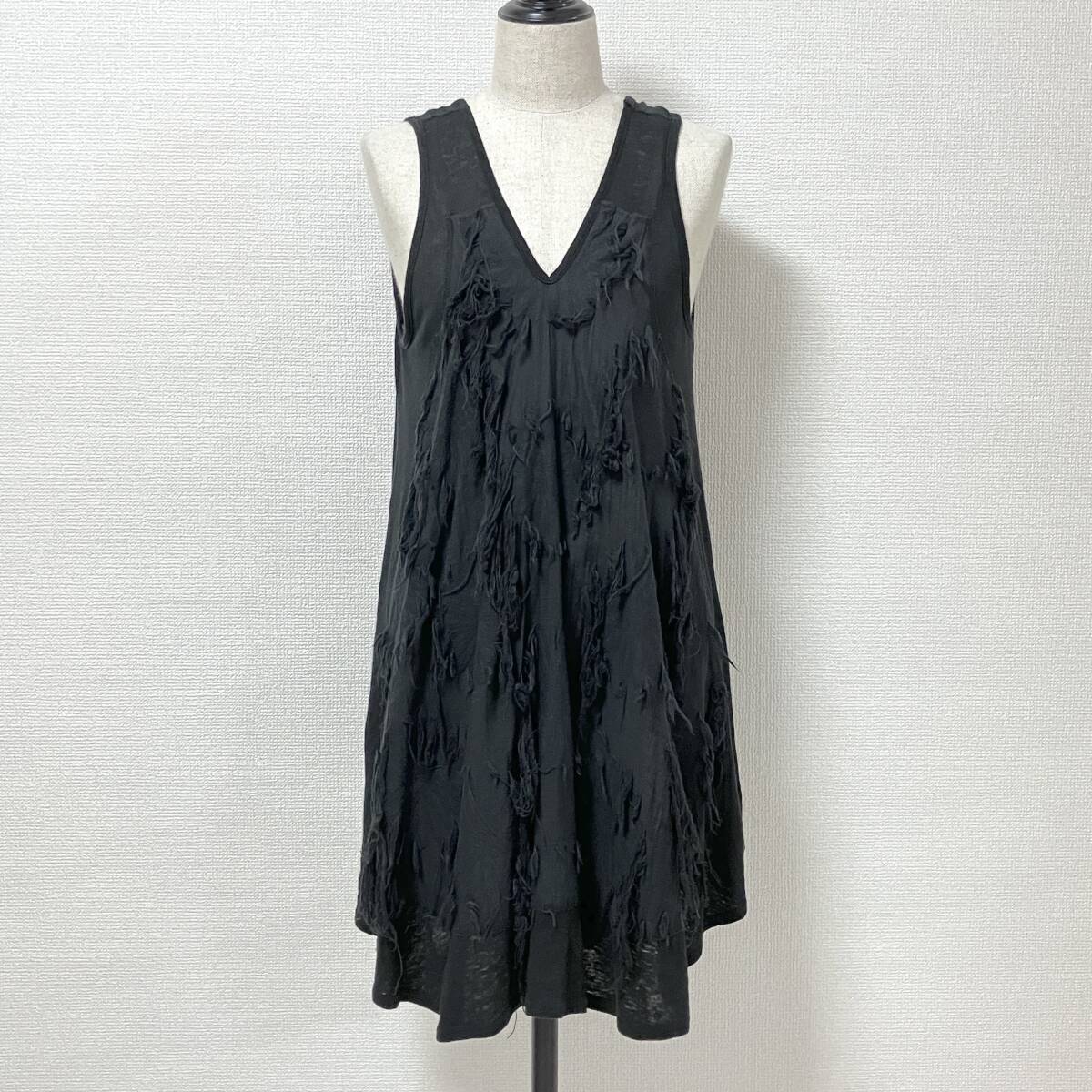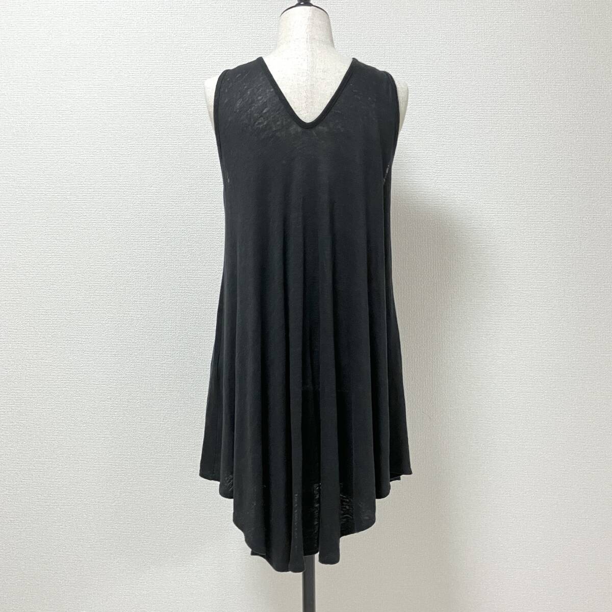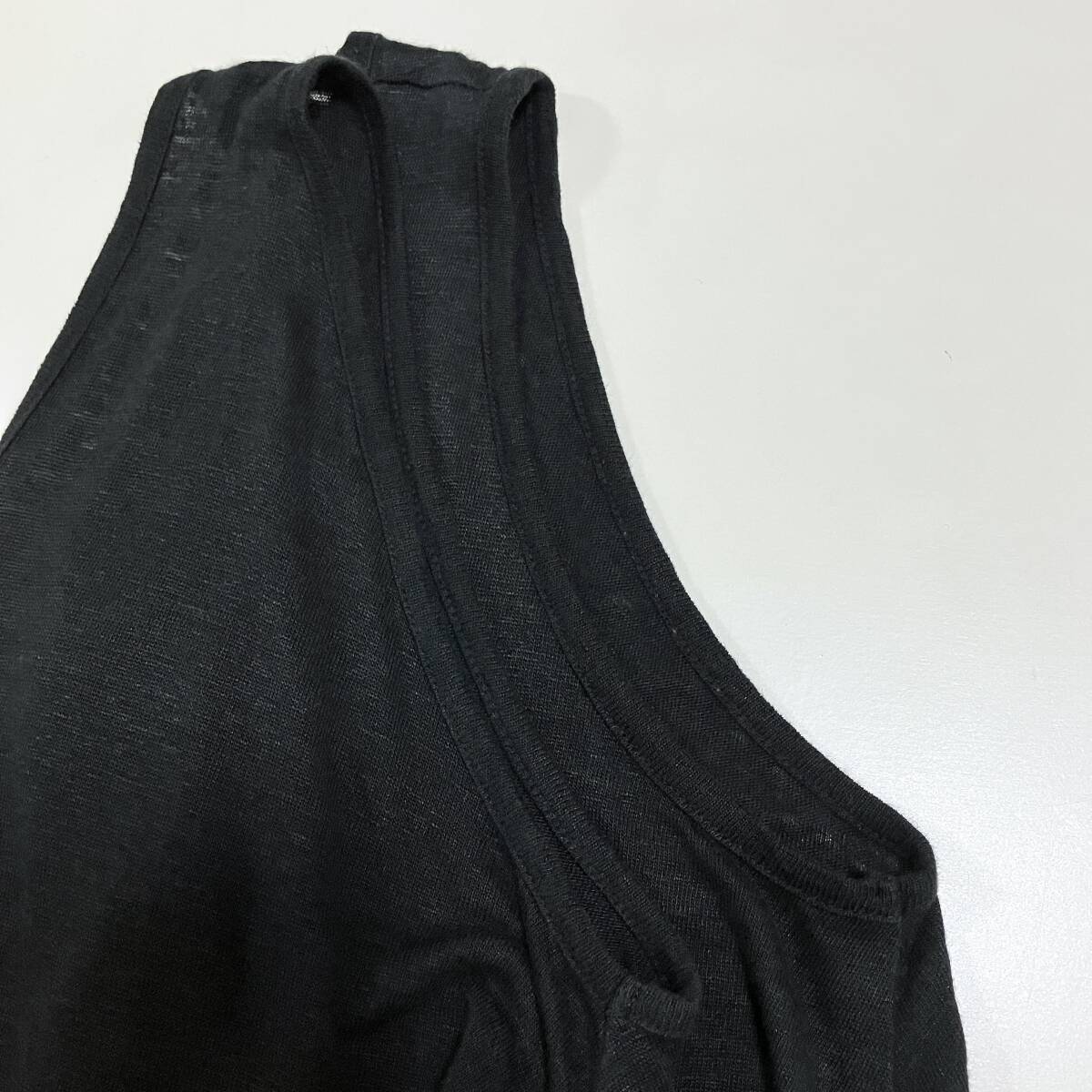 Y's Yohji Yamamoto リネン 花柄 ジャガード フリンジ ノースリーブ カットソー チュニック 黒 ワイズ ミニ ワンピース archive 5080222