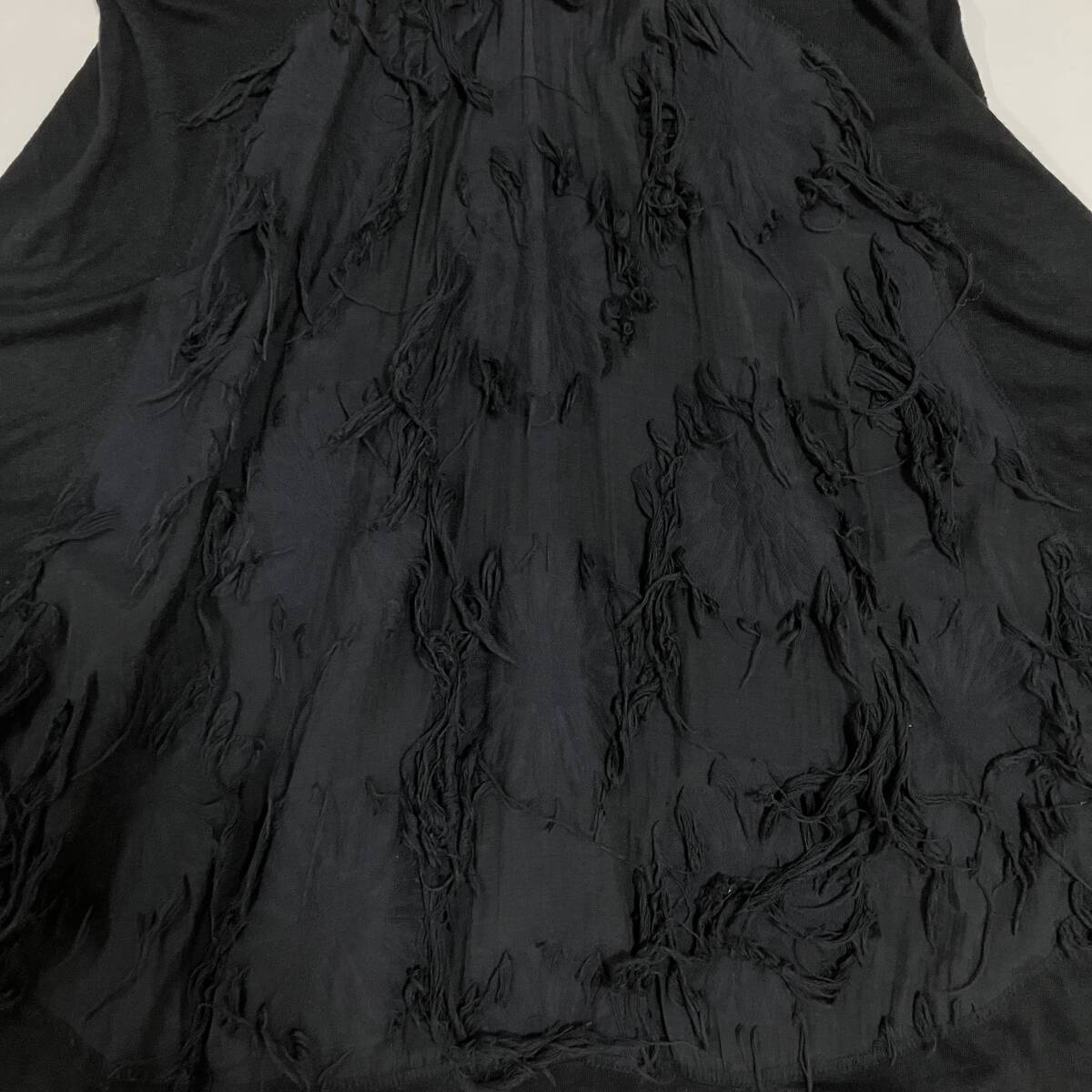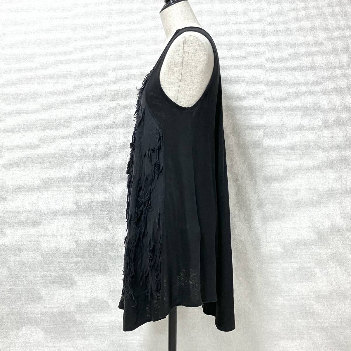 Y's Yohji Yamamoto リネン 花柄 ジャガード フリンジ ノースリーブ カットソー チュニック ブラック