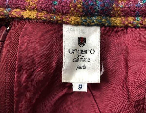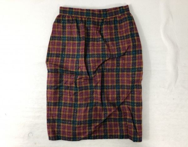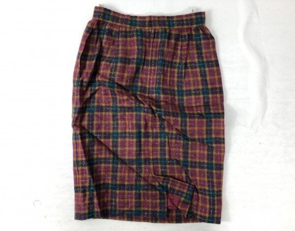 エマニュエルウンガロ Emanuel Ungaro オールド レトロ トラッド 古着 ウール ツイード チェック 膝丈 スカート 裏地 バックジップ 9号 です。
