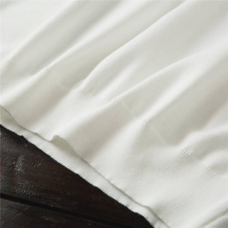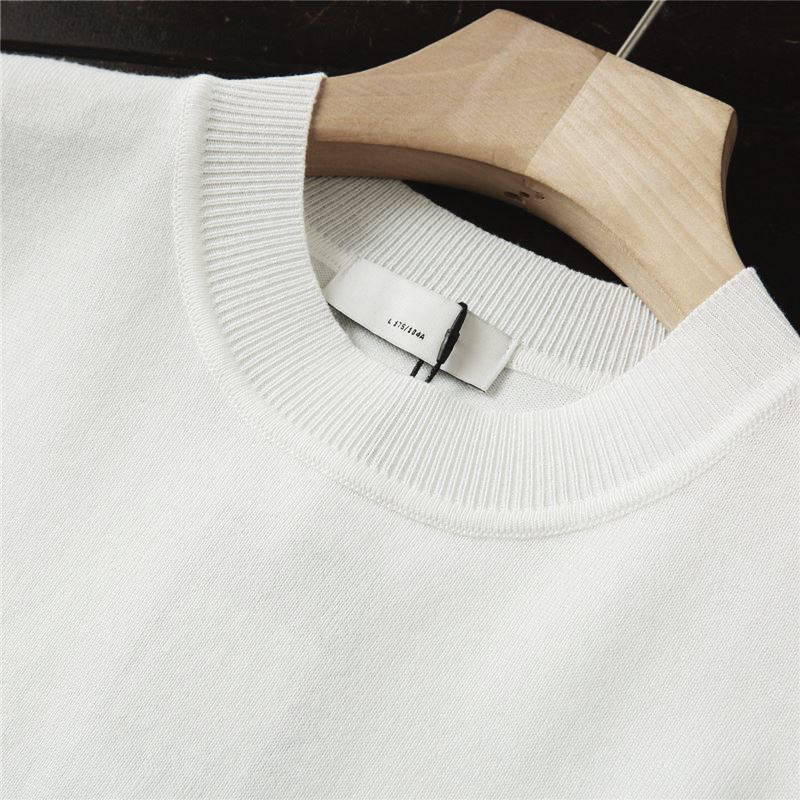 W1731-M 新品 テンセル混 サマー ニット 接触冷感 柔らかい 伸縮性 半袖 Tシャツ メンズ プルオーバー 春夏 盛夏 丸首 クルーネック ハイゲージ カットソー ホワイト