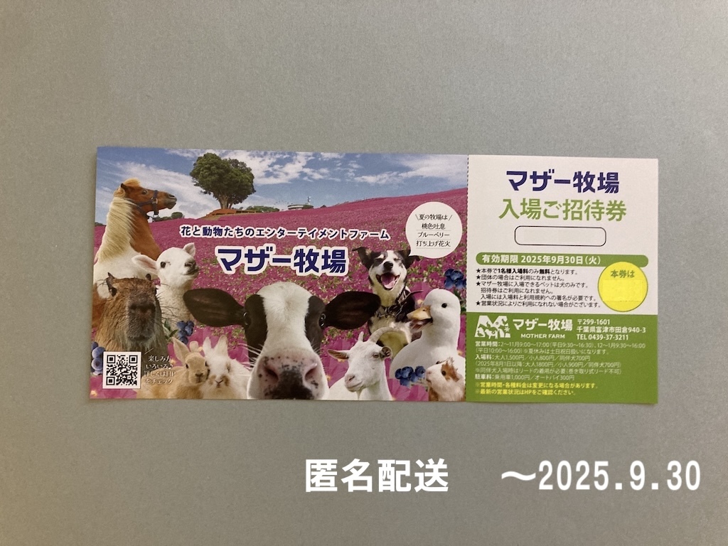 マザー牧場  招待券  9/30 1〜9枚 (匿名配送)