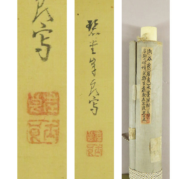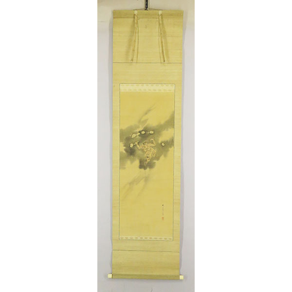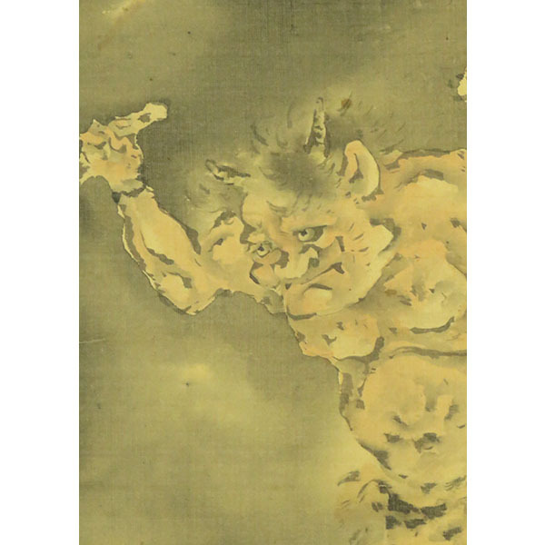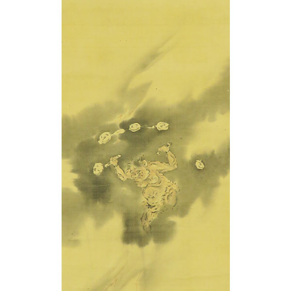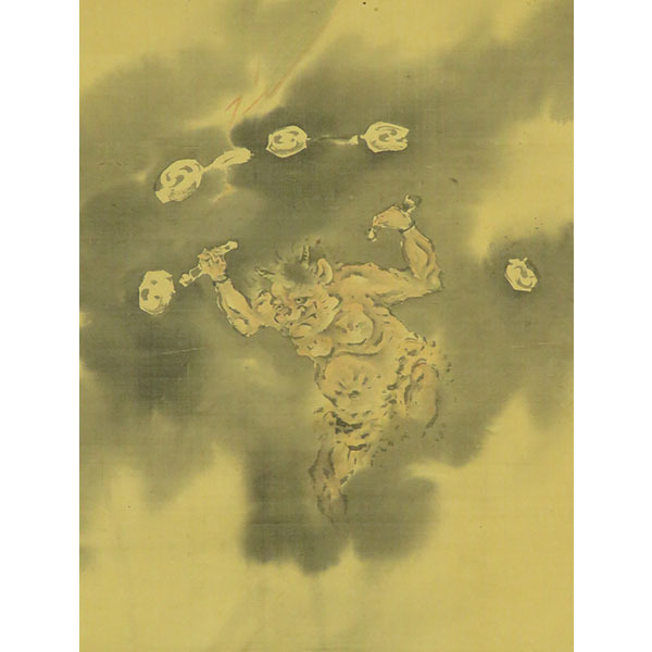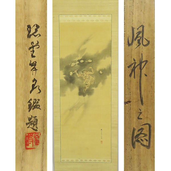 B-4289【真作】岸良 肉筆絹本淡彩 風神雷神図 掛軸/日本画家 岸派 京都 師・岸駒 岸駒の娘婿 風俗画 仏画 書画