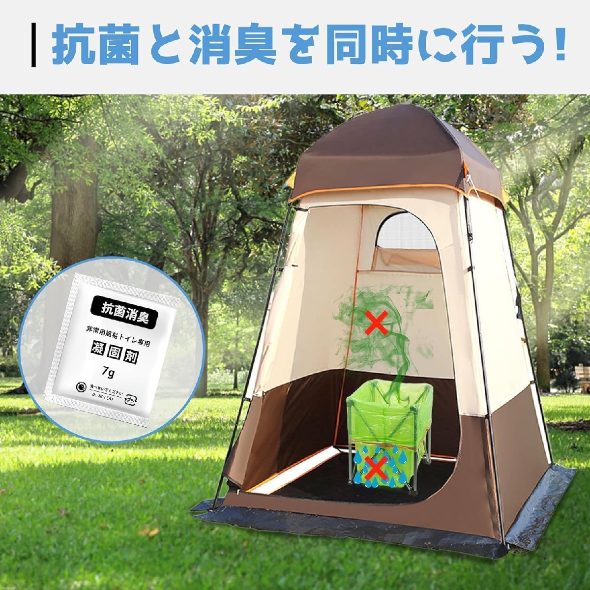 【瞬時に凝固し悪臭を抑える高性能】各包の凝固剤は、30秒以内に600mlの液体をゼリー状に素早く凝固します。強力な吸水性ポリマーにより、液体の漏れを防ぎ、抗菌作用で細菌の増殖を抑制します。また、アンモニアや排泄物の悪臭も効果的に抑え、清潔な環境を維持します。災害時やアウトドアなどのあらゆる場面で、快適で安心なトイレ環境を提供します。
