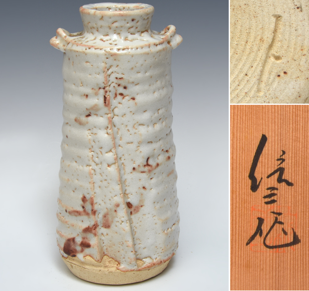 養心窯 樋口統三(作)志野花入花器 高さ24.2㎝ 花生 花瓶 共箱 華道具 茶道具 美濃 樋口力三 |
