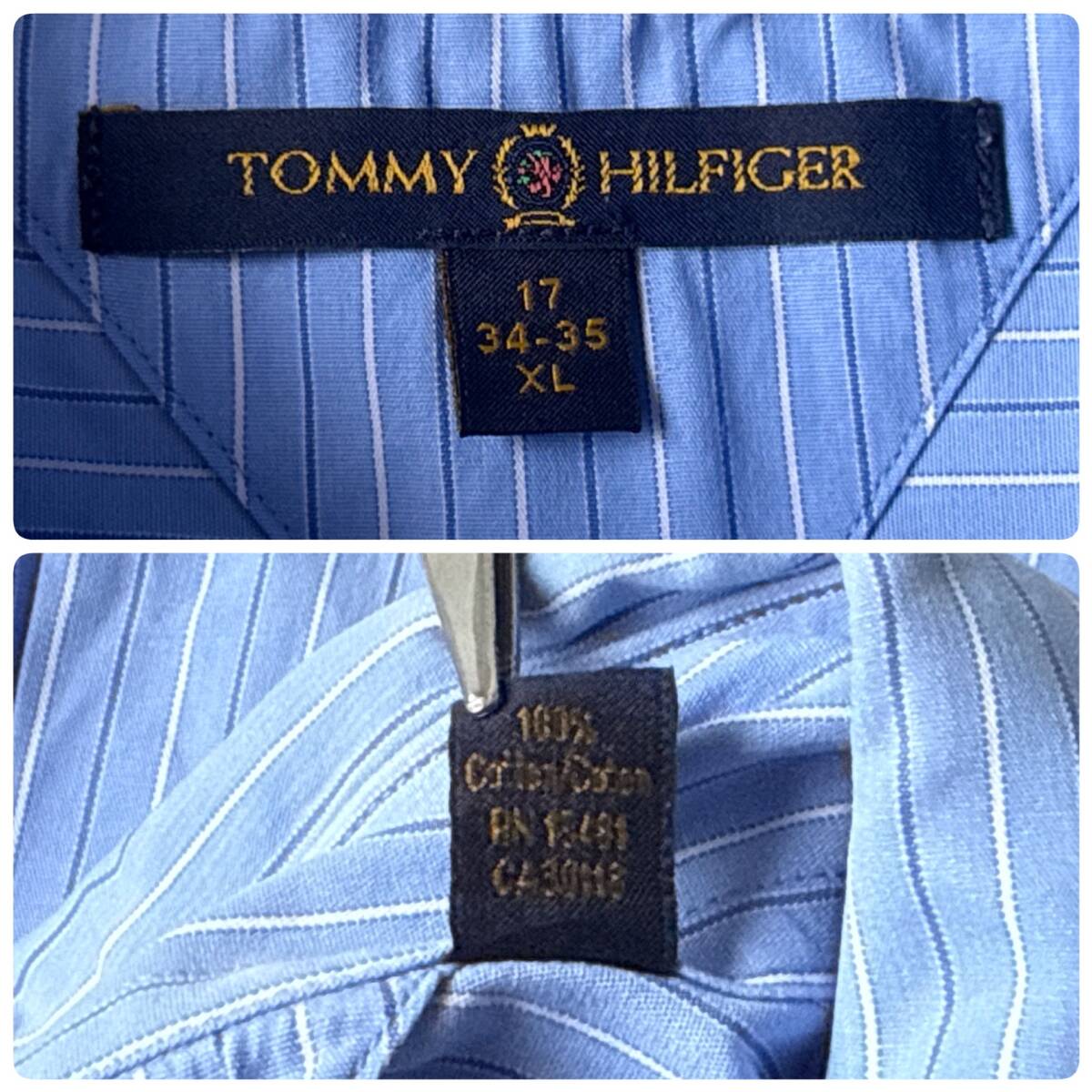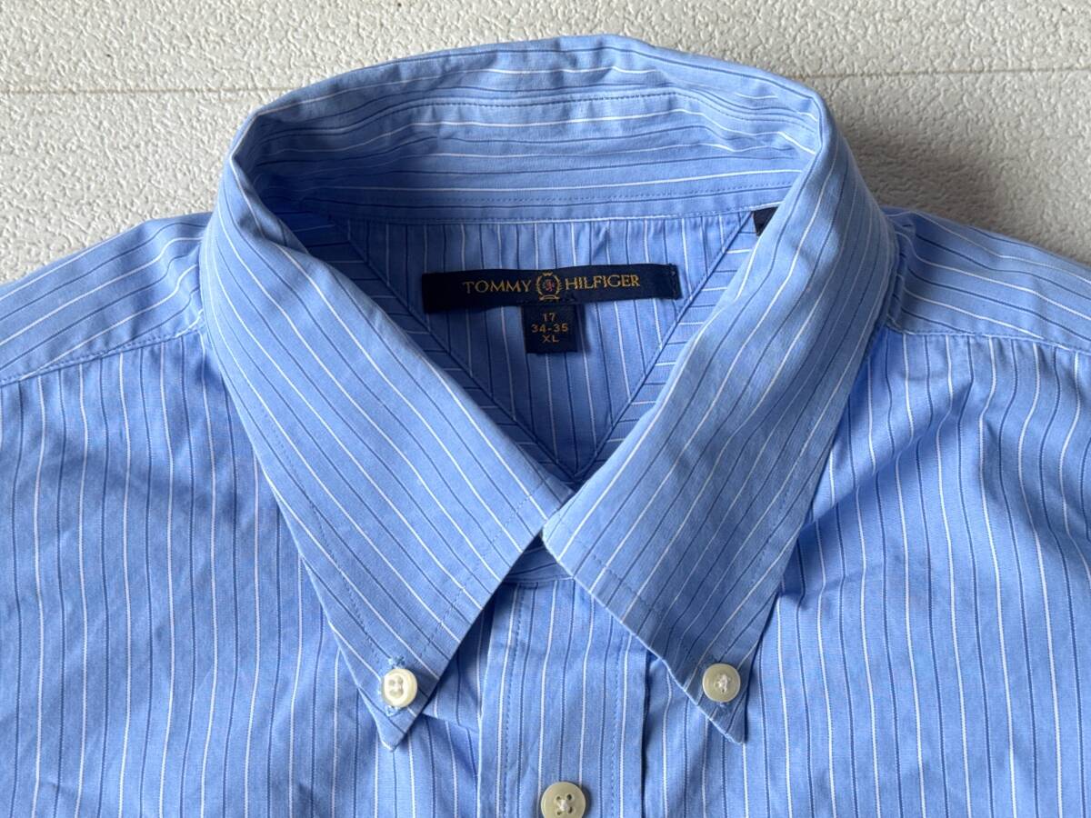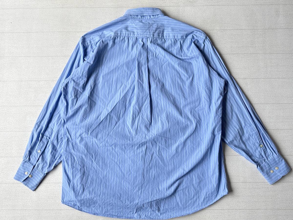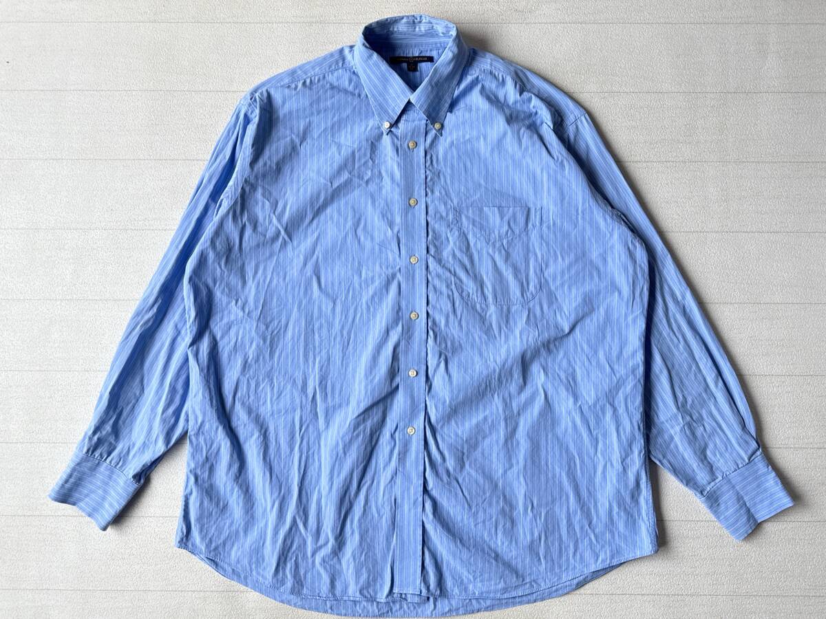 ☆送料無料☆ TOMMY HILFIGER トミーヒルフィガー USA直輸入 古着 長袖 胸ポケット付き ストライプ ボタンダウン シャツ メンズ XL ブルー