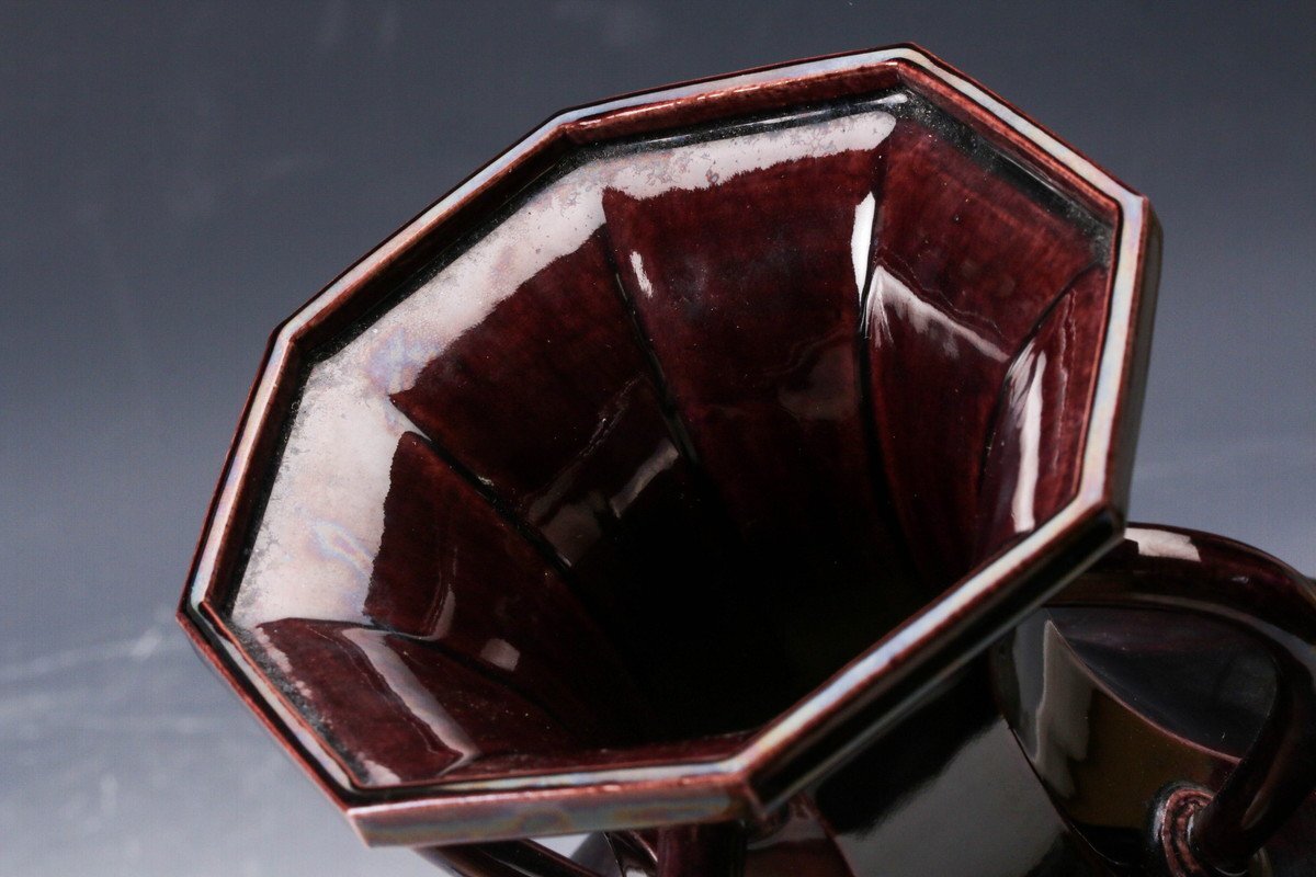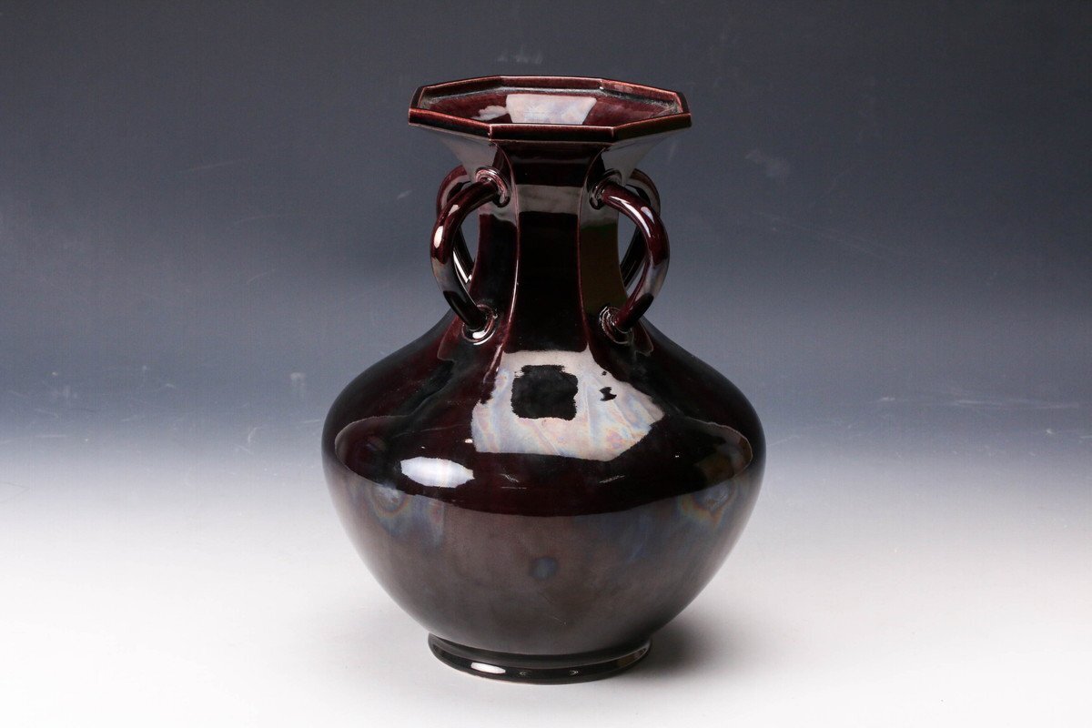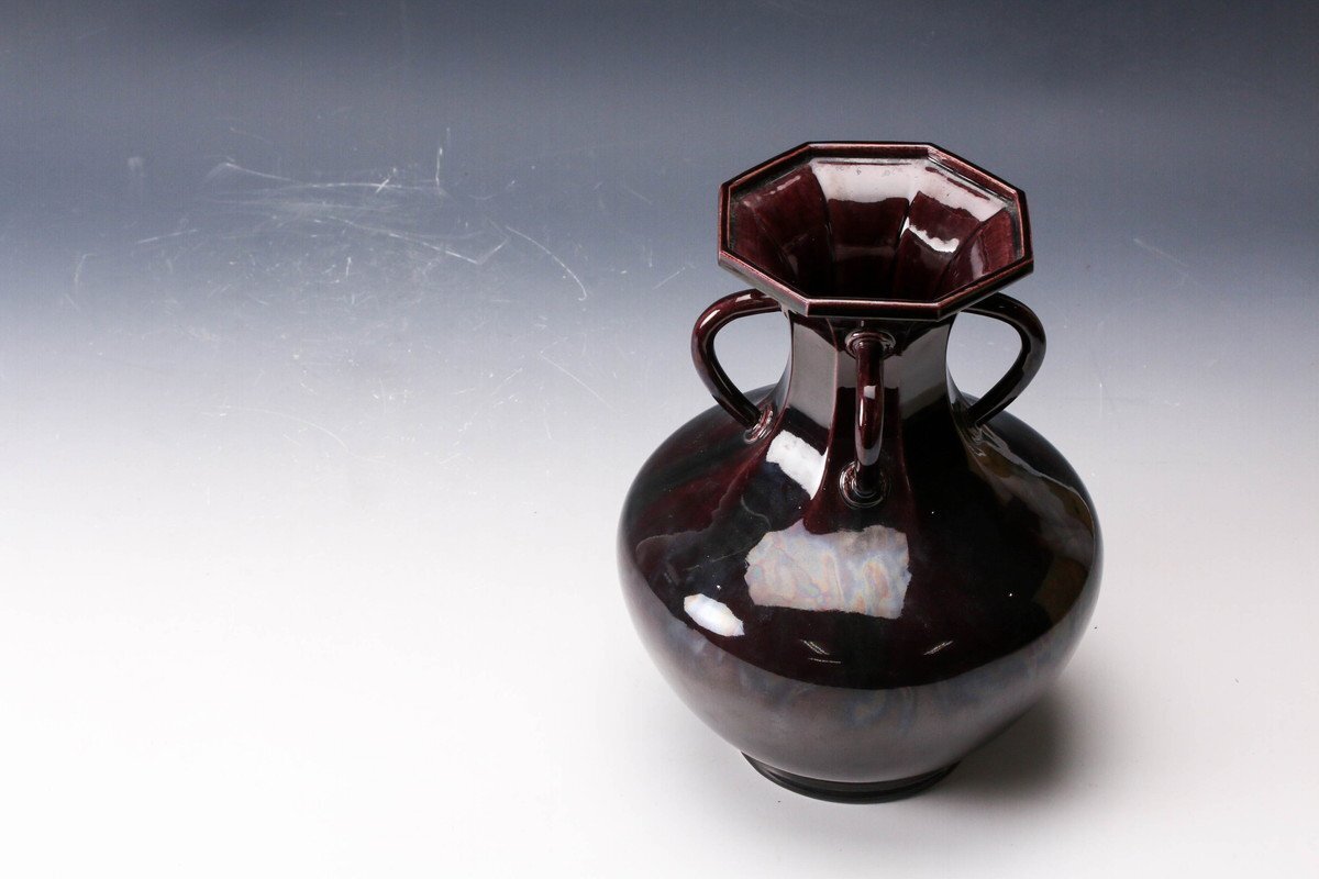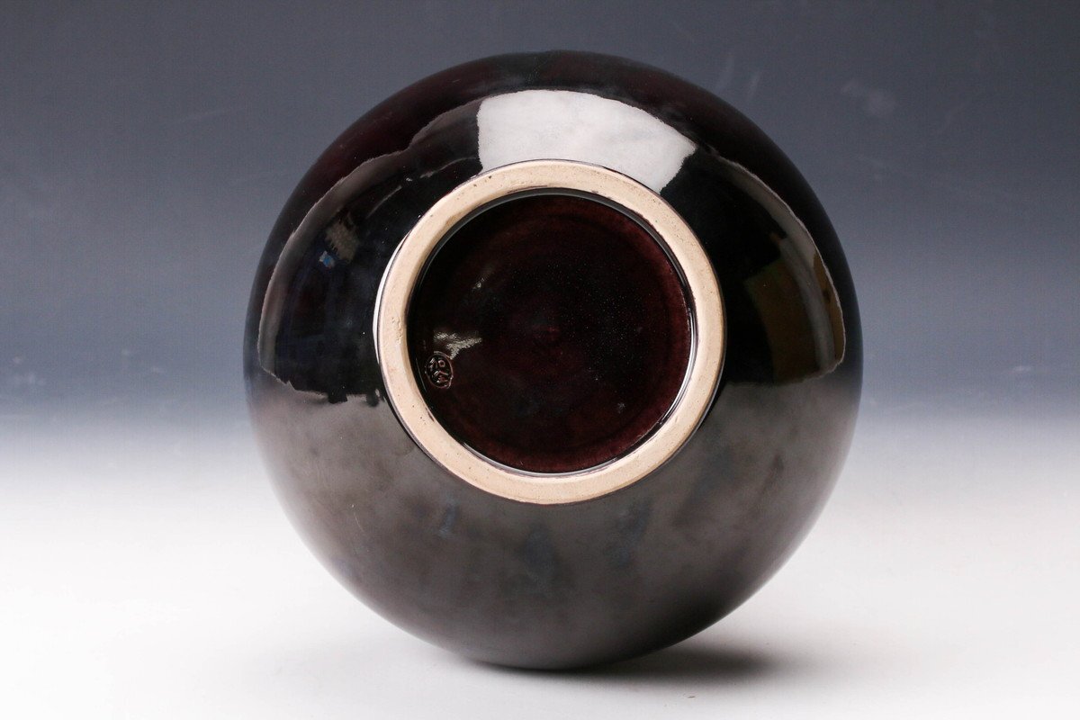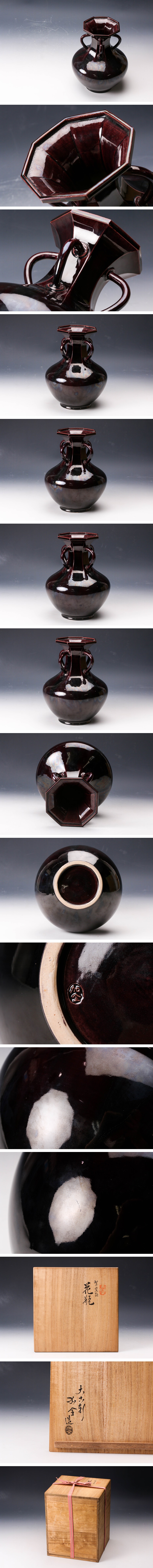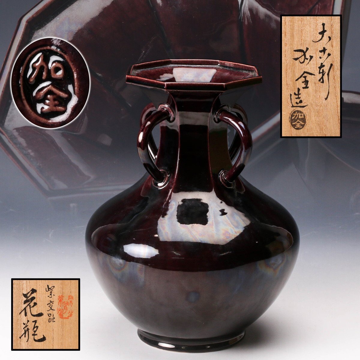 【佳香】滝口加全 大古軒 紫交趾花瓶 共箱 本物保証