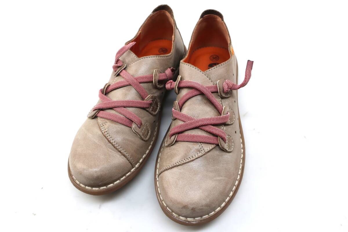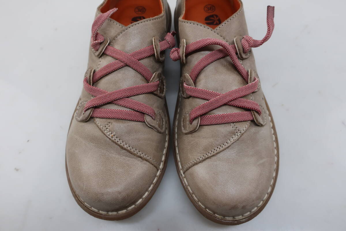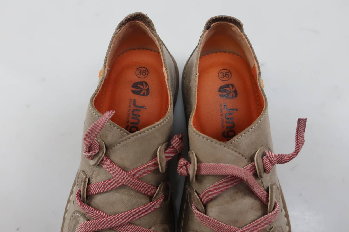 【送900円】823 Jungla ジャングラ レディース フラットシューズ レースアップ レザー 皮革 個性 ベージュ 36