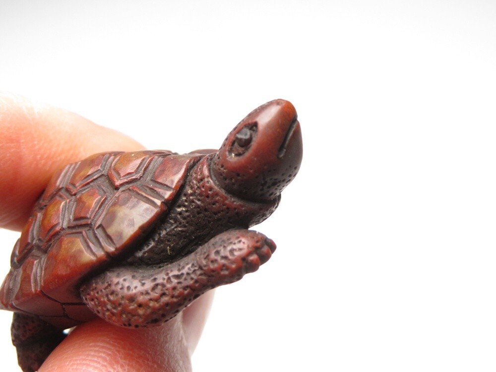 ●明治期 堤物 木製 亀 根付になります。古い物ですが極力状態の良い作品を出品しておりますので是非ご覧ください。 【状態】 ●経年を考慮し状態はよいと思います。 【サイズ(約)】 ●2×4.8㎝ (素人寸法ですので、若干の誤差はお許し下さい) 【発送】 出張等により発送に一週間ほどお時間を頂戴する場合がございます。 【領収書】 領収書発行は致しておりません。 Yahoo!かんたん決済手続き完了時の確認画面をプリントアウトして領収書としてお使い下さい。 ※領収証として税務署に認められております。 ご了承のうえでのご参加をお願いいたします。以下の注意事項もご確認ください。 |