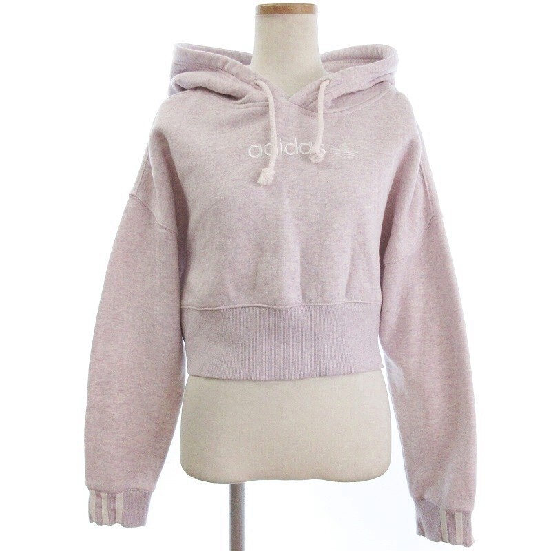アディダスオリジナルス adidas originals クロップド パーカー プルオーバー 裏起毛 ロゴ 刺繍 パープル系 M レディース