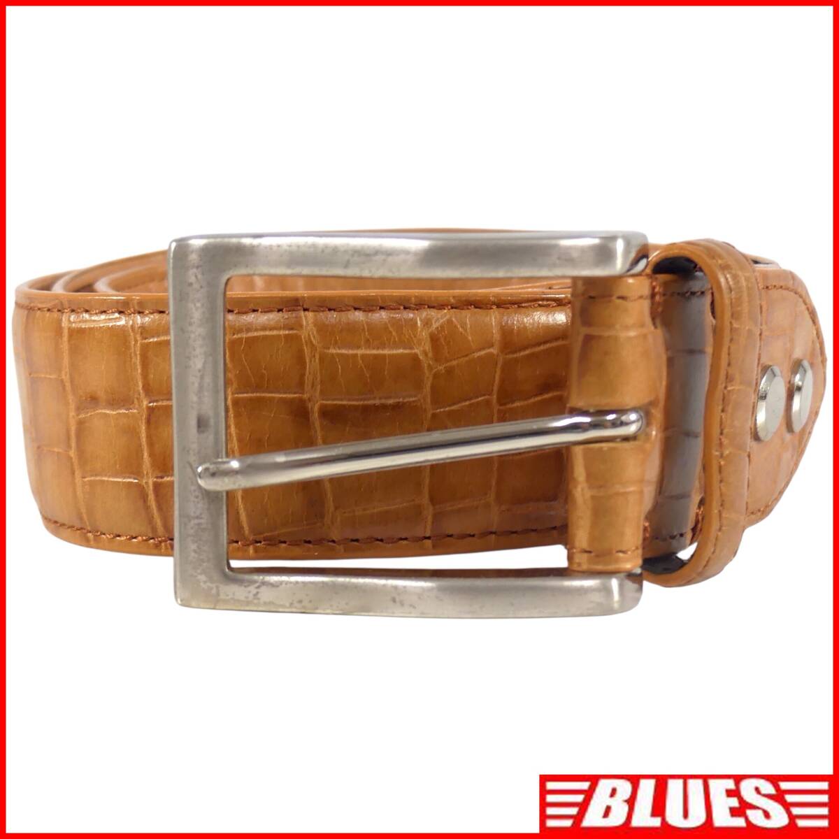 即決★IL FARO★ レザーベルト イルファーロ 茶 クロコ型押し 本革 バックル 本皮