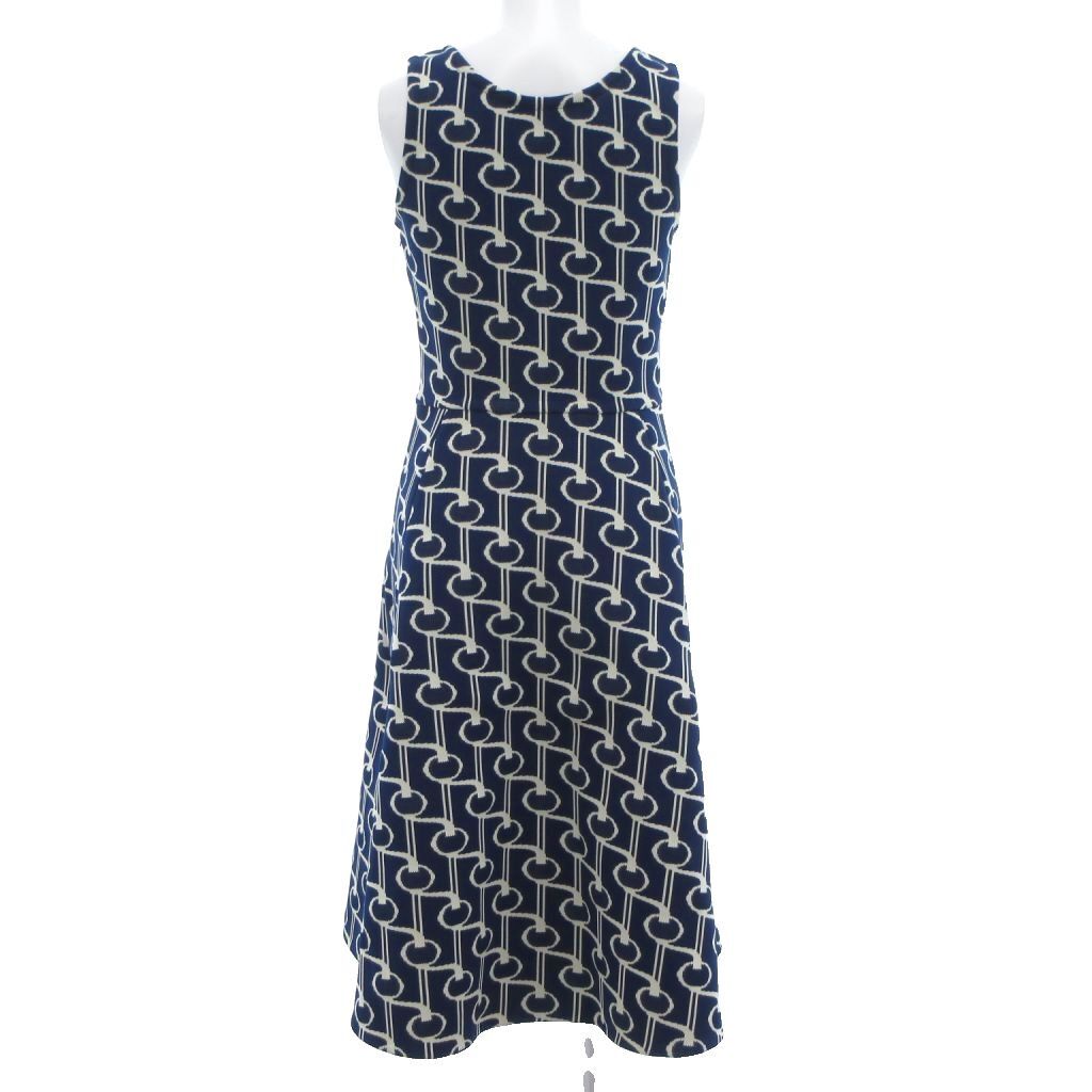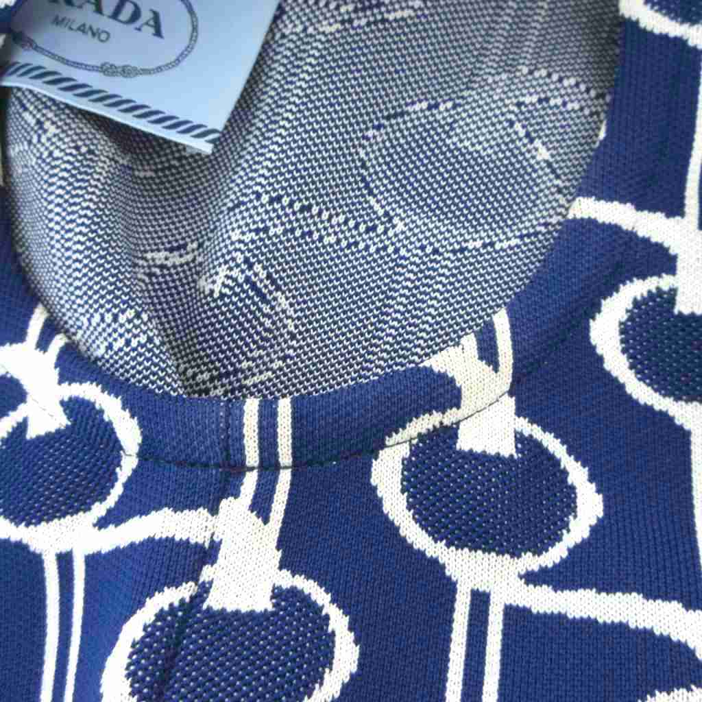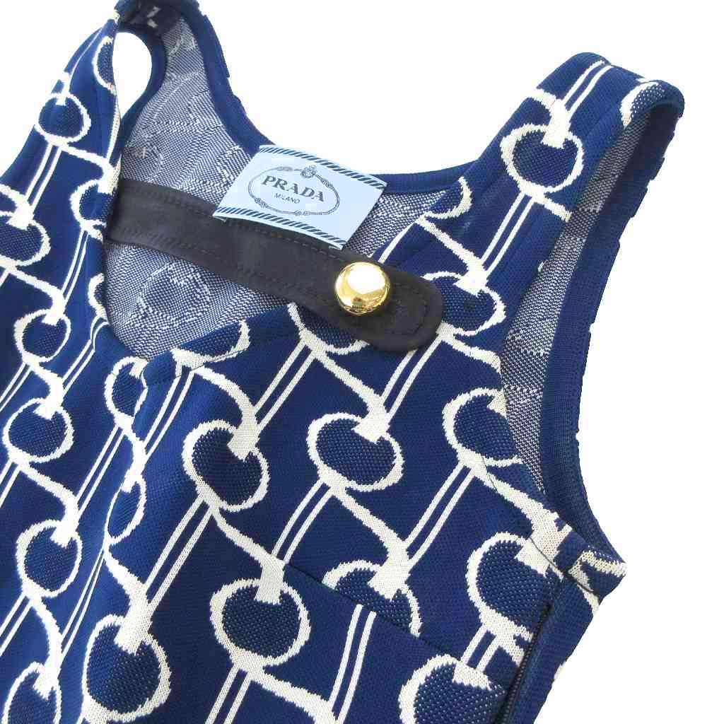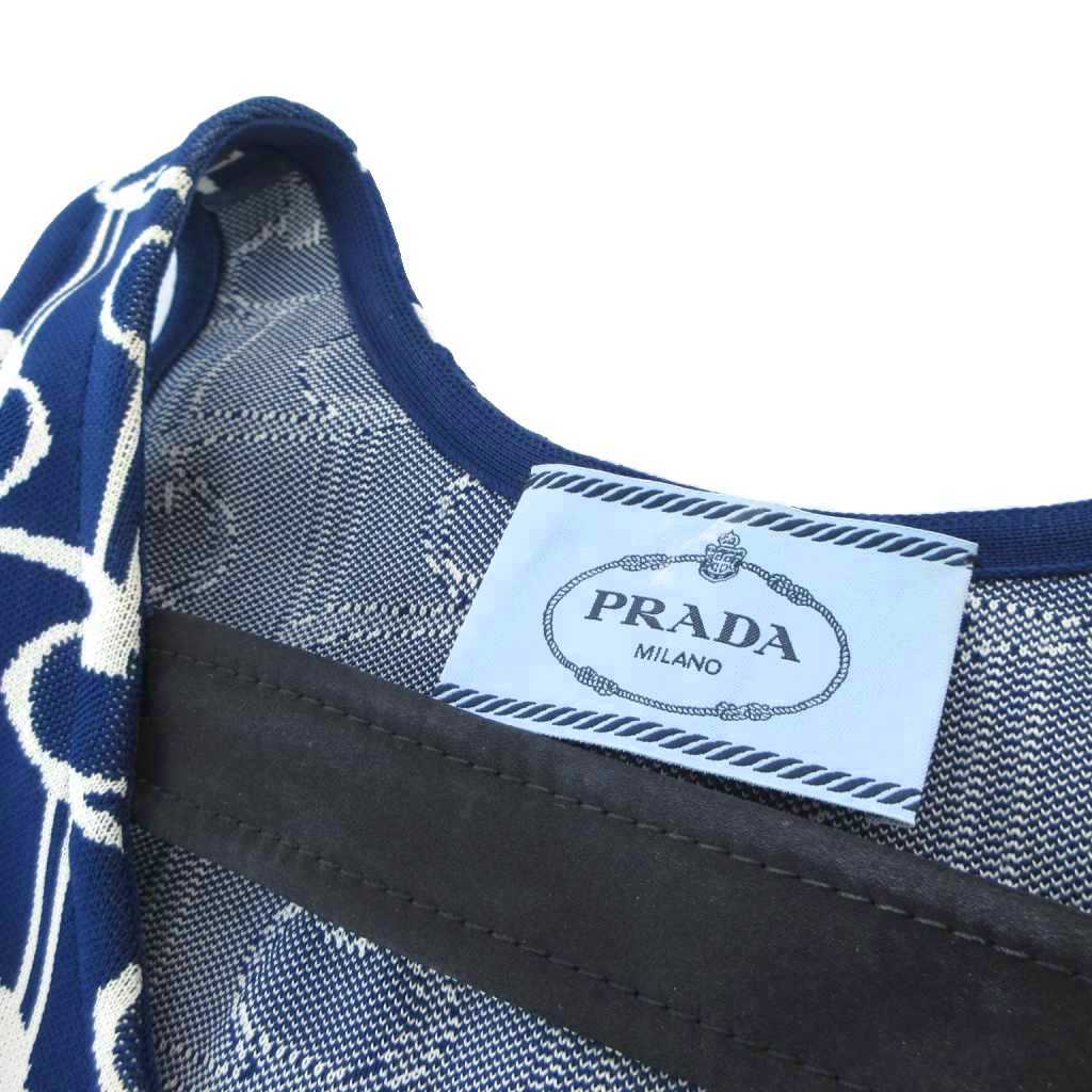 プラダ PRADA ワンピース ノースリーブ 総柄 ミモレ ロング 38 ネイビー /UO レディース