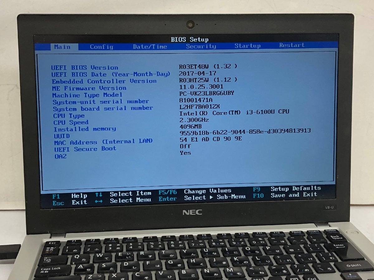 ジャンク/ NEC PC-VK23LBRG6UBY Intel Core i3-6100U メモリ4.1GB ストレージ無し 【K20444】