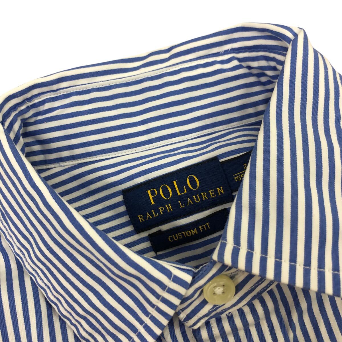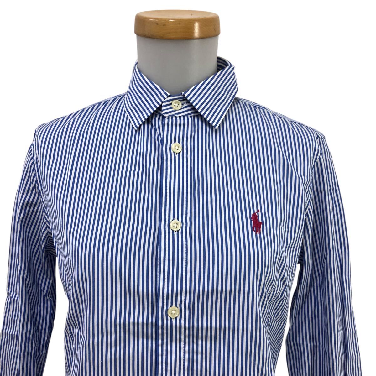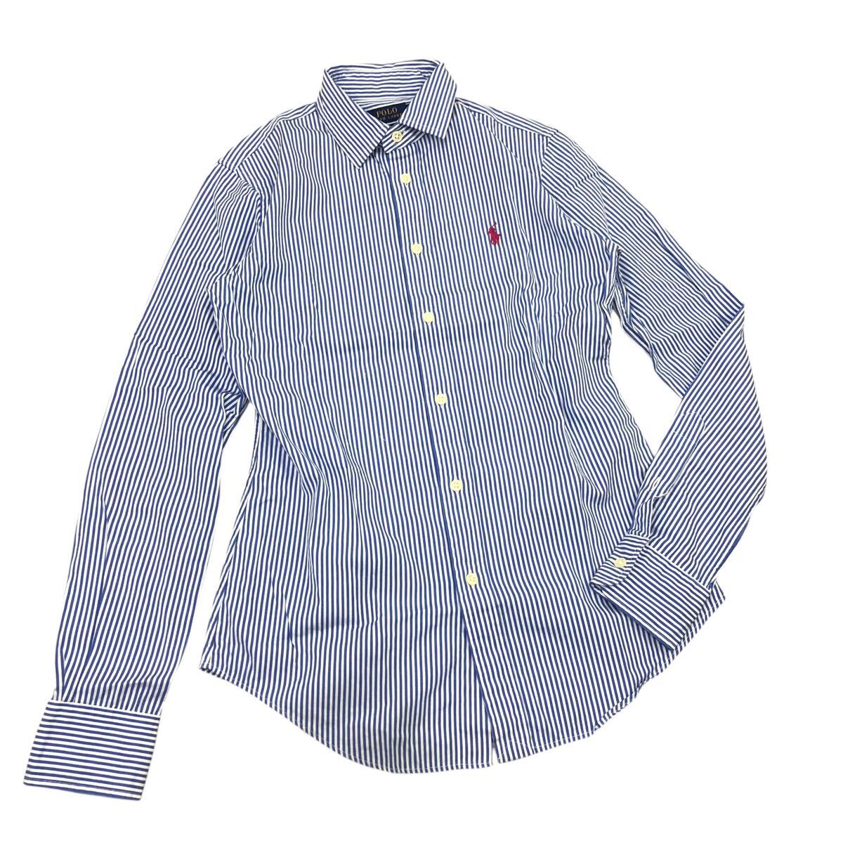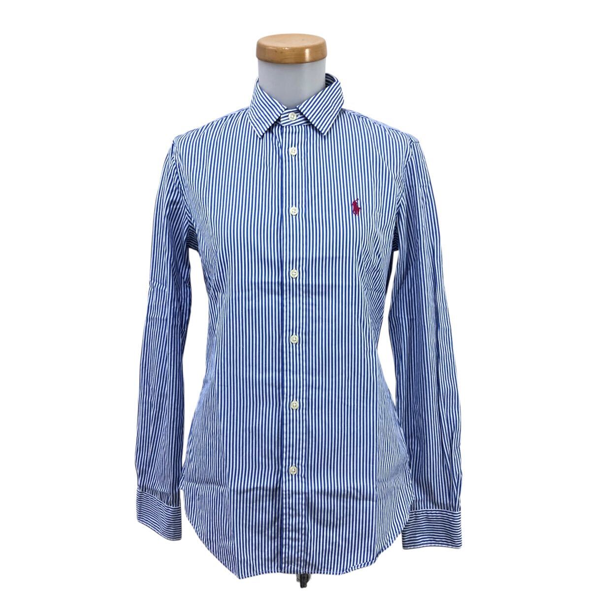 8Nm319-37 POLO RALPH LAUREN ポロラルフローレン CUSTOM FIT ストライプ 柄 長袖 ブラウス シャツ トップス ブルー系 レディース 2