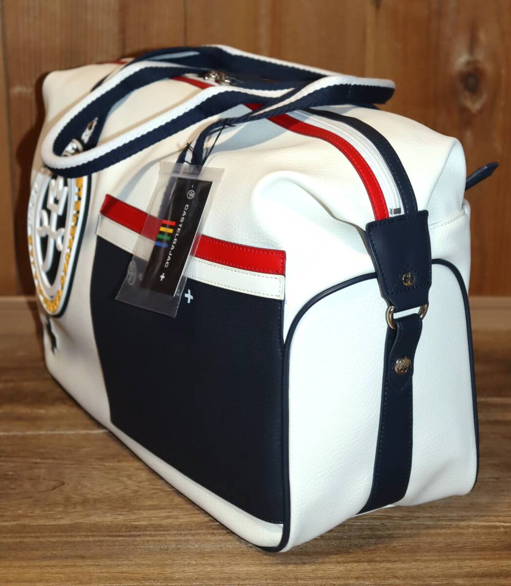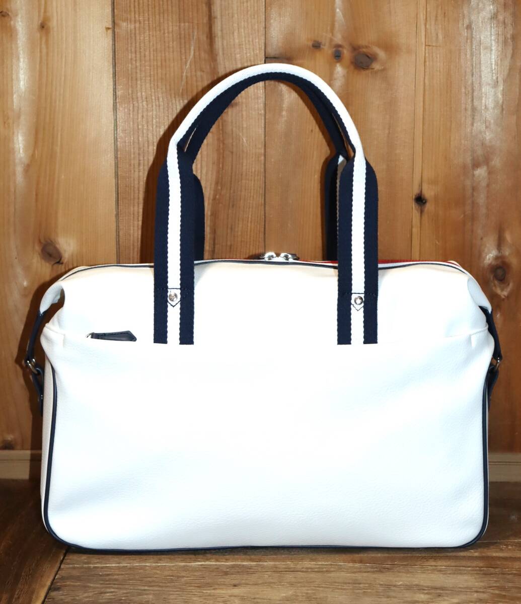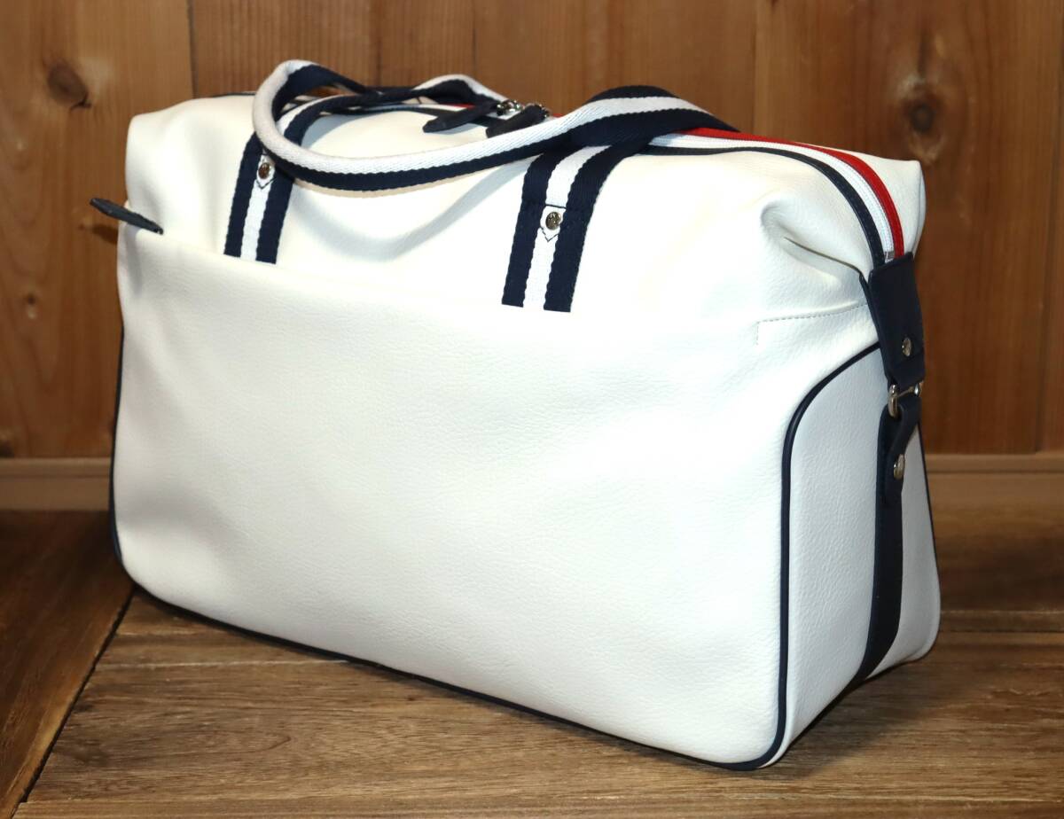 デザイン性と実用性を併せ持つポケットと、トリコロールカラーの大胆な組み合わせがポイントのボストンバッグ。