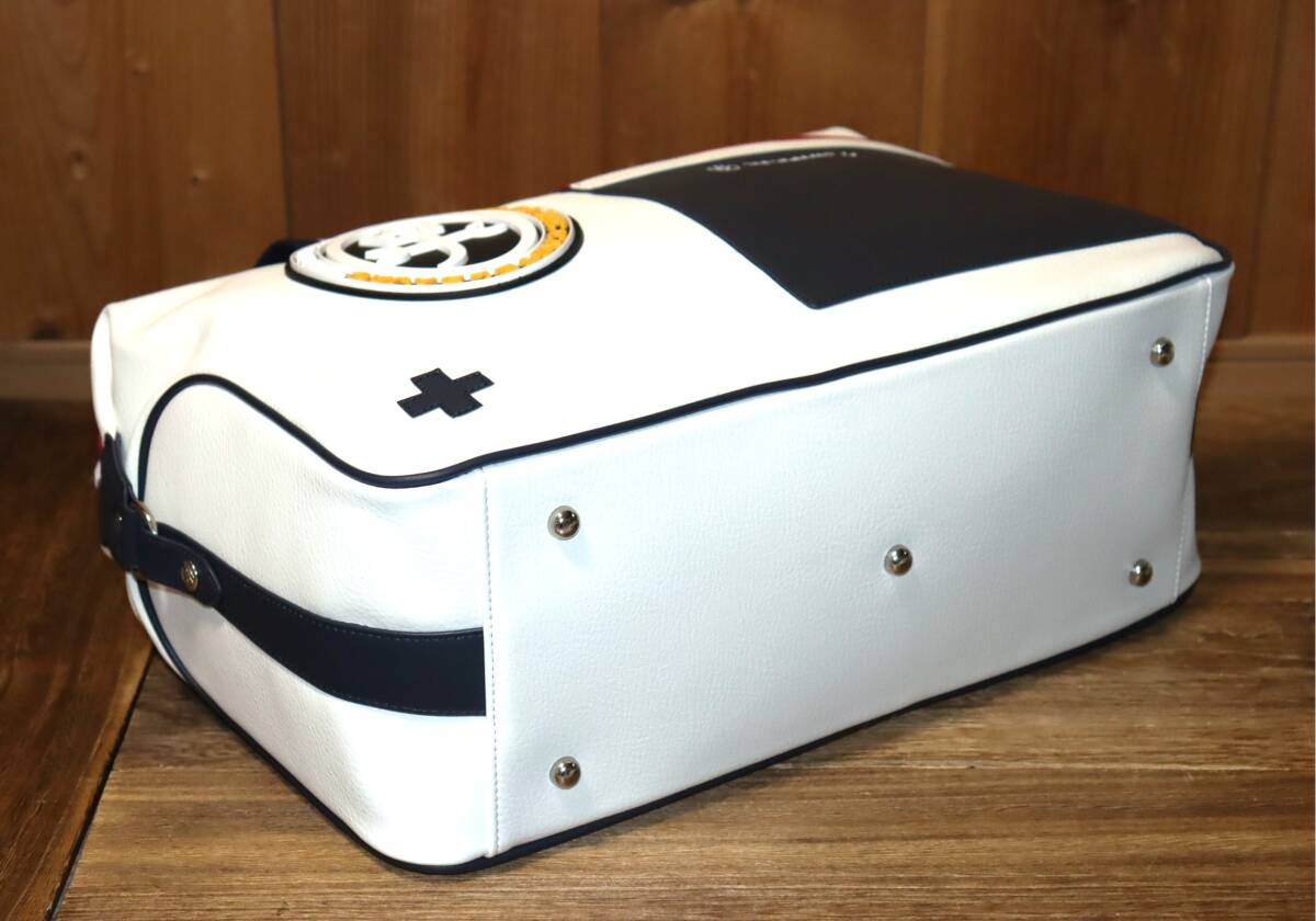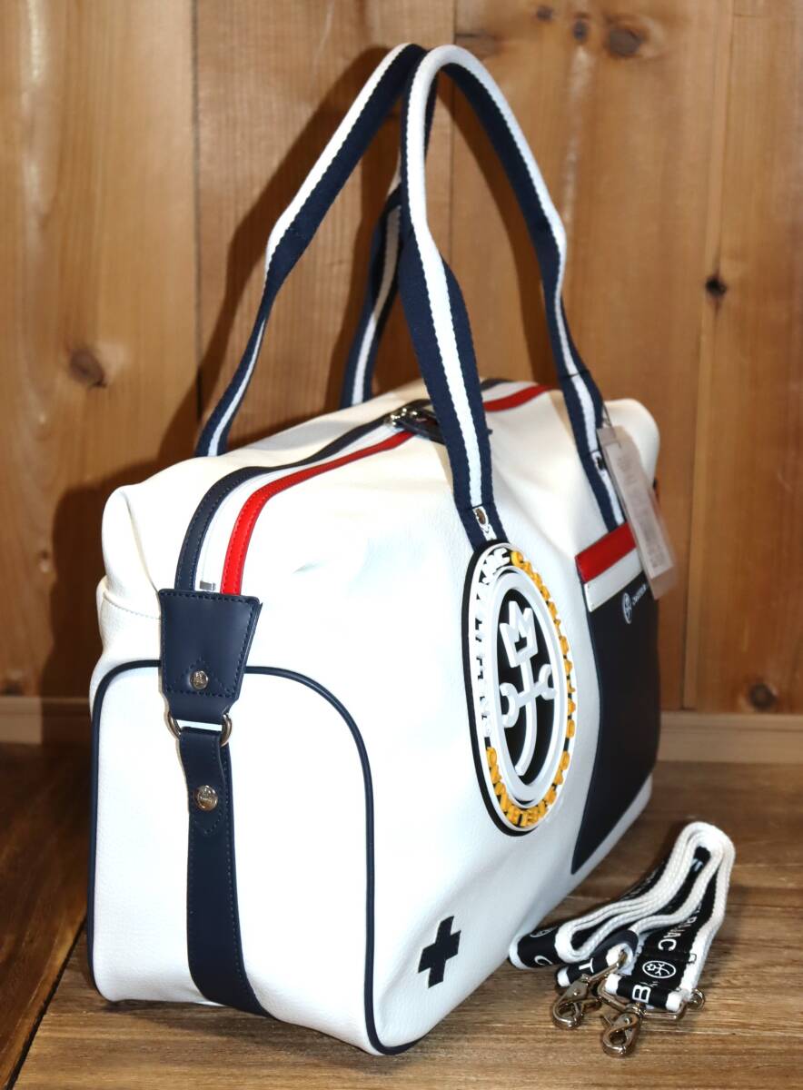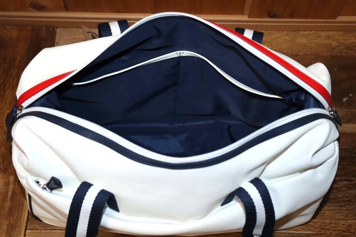 デザイン性と実用性を併せ持つポケットと、トリコロールカラーの大胆な組み合わせがポイントのボストンバッグ。