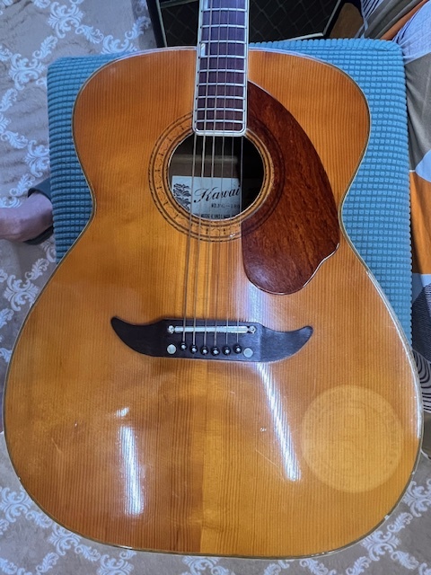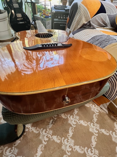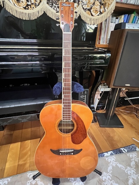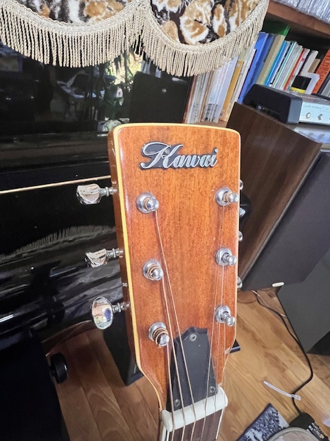 古ーいカワイのFG-180 です、ジャンク品を入手してから磨きと手持ちパーツで仕上げました。昔のギターですのでブリッジが浮いてましたが裏側に補強をいれ通常使用できるようにしています。