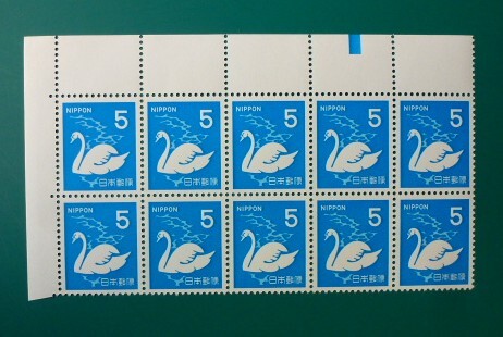 5円 コブハクチョ     カラーマーク上  10枚ブロック   未使用    完美品 。