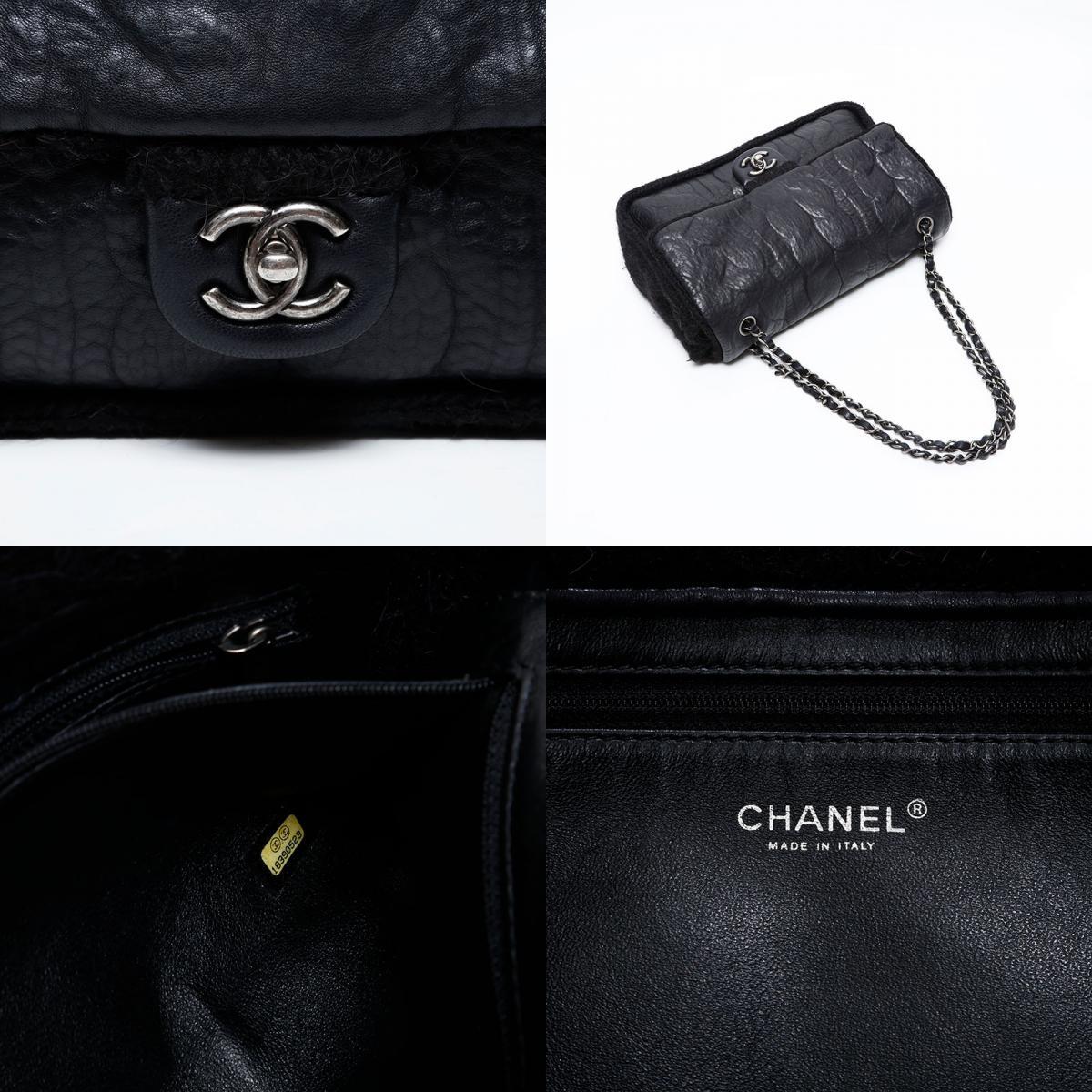 極美品 CHANEL 18番台 2013-2014 レザー ニット ダブルチェーン フラップ ショルダーバッグ ブラック
