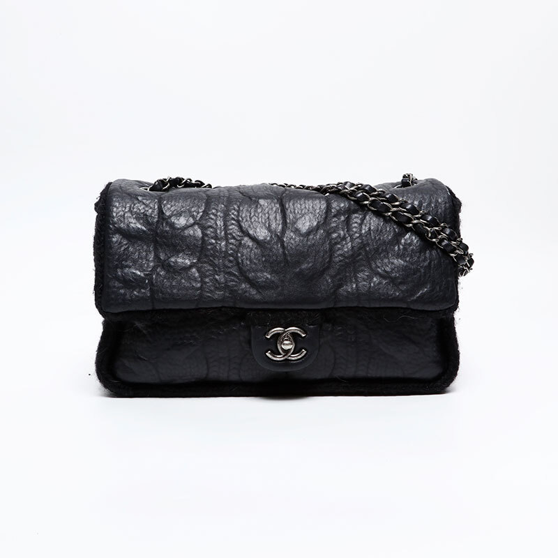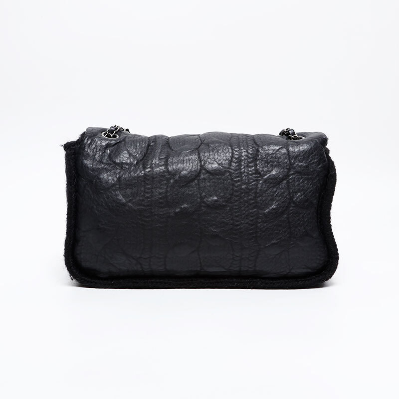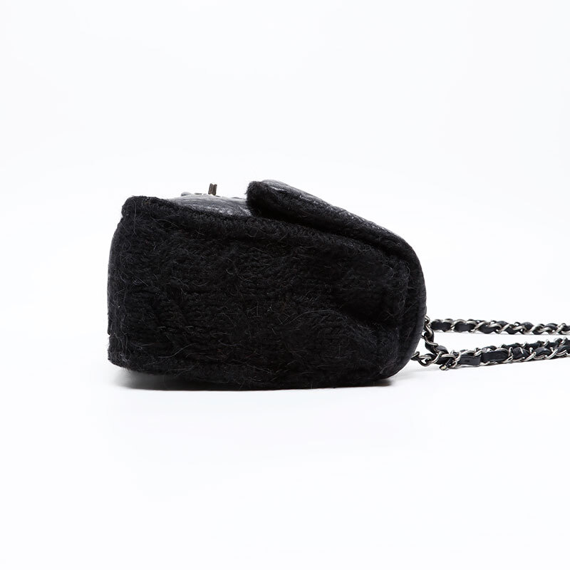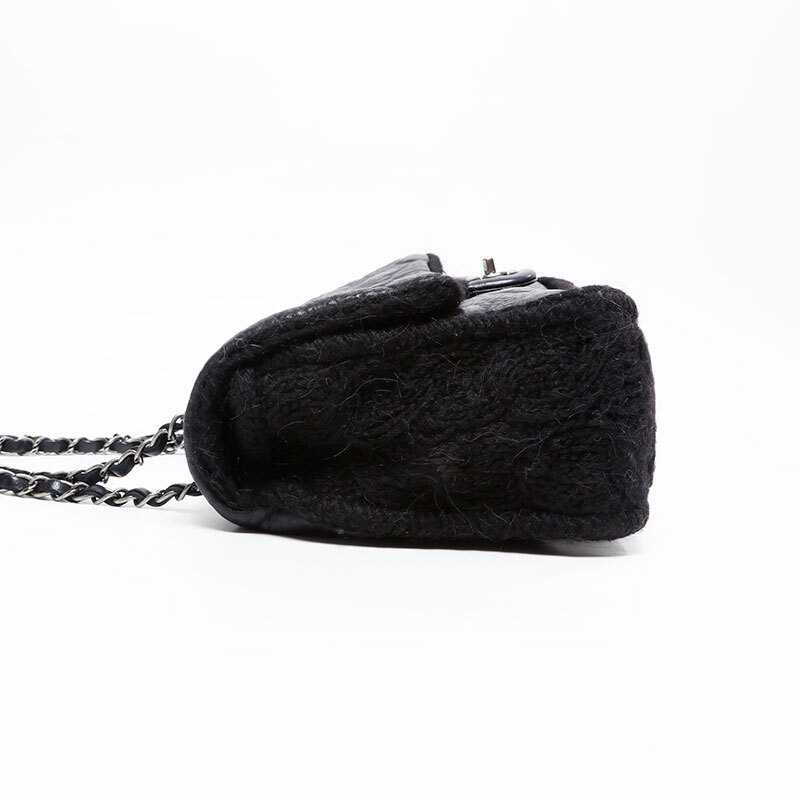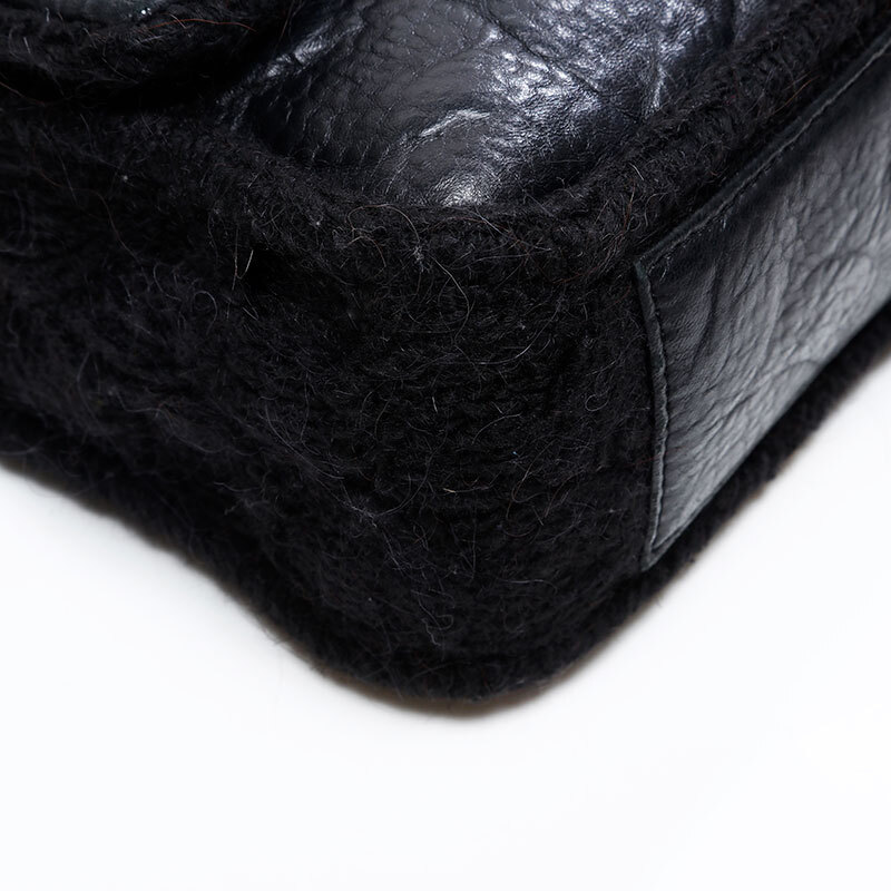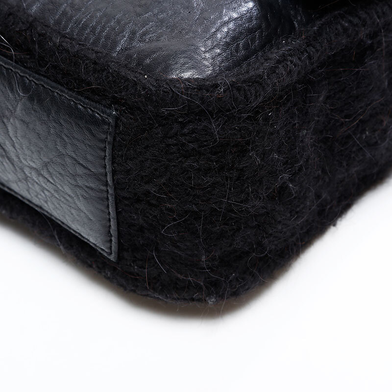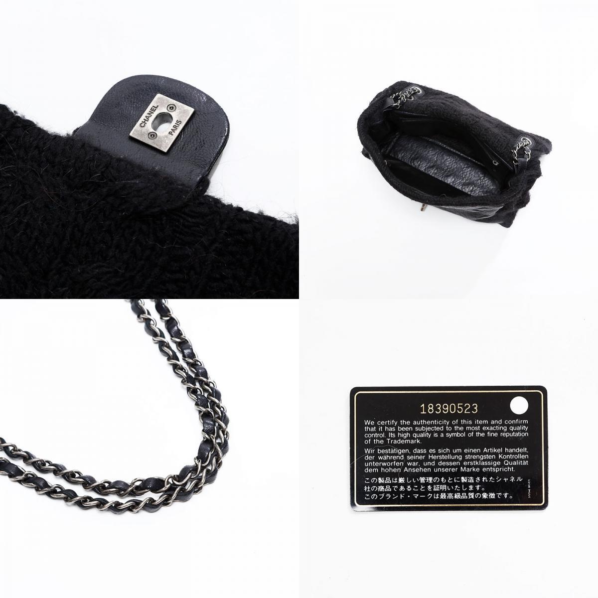 シャネル CHANEL ショルダーバッグ 18番台 2013-2014 レザー ニット ダブルチェーン フラップ ブラック