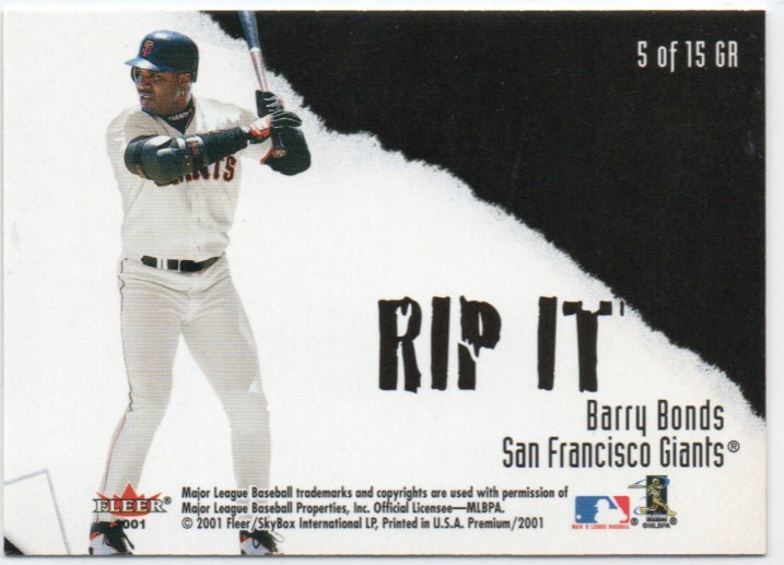 MLB BARRY BONDS SHAWN ESTES 2001 FLEER PREMIUM GRIP IT No.GR5