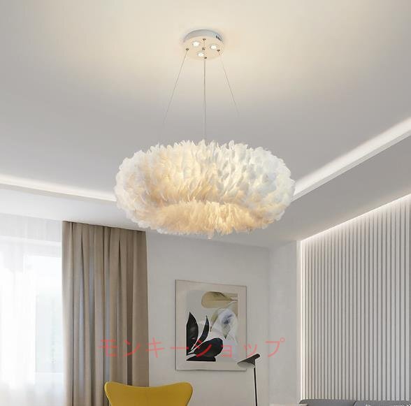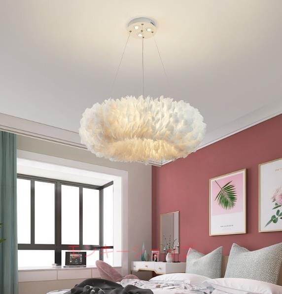 質感NO.1◆北欧風 insフェザーシャンデリア 別荘 照明ベッドサイドライト ペンダントライト 寝室用ランプ プリンセス風 装飾品