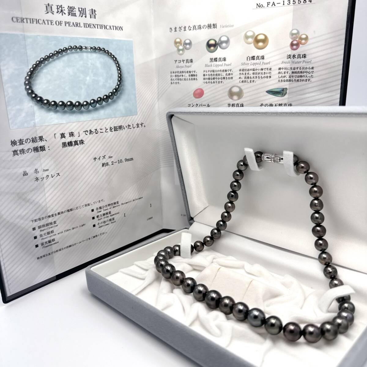 【真科研鑑別書】オーロラ級 黒蝶真珠 8.2-10.9mm ネックレス 真珠科学研究所 クロチョウ 大珠 54.3g 本真珠 パール アコヤ あこや 2SEND