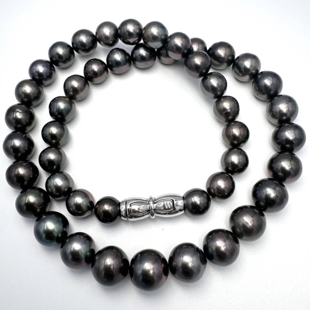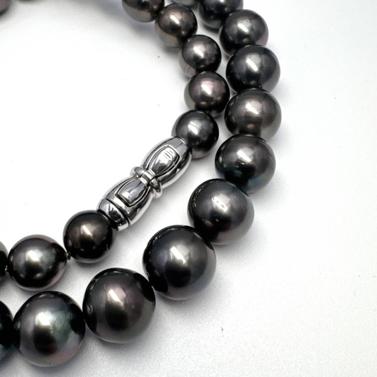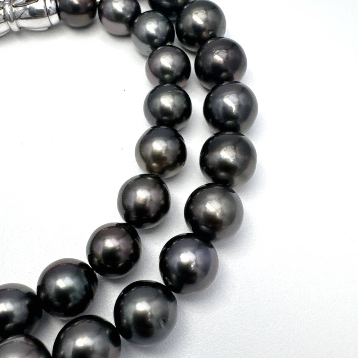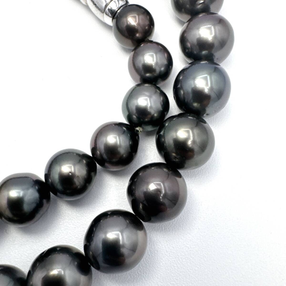 ● 真科研 鑑別書付き オーロラ級 黒蝶真珠 8.2-10.9mm ネックレス 真珠科学研究所 クロチョウ 大珠 54.3g 本真珠 パール アコヤ あこや
