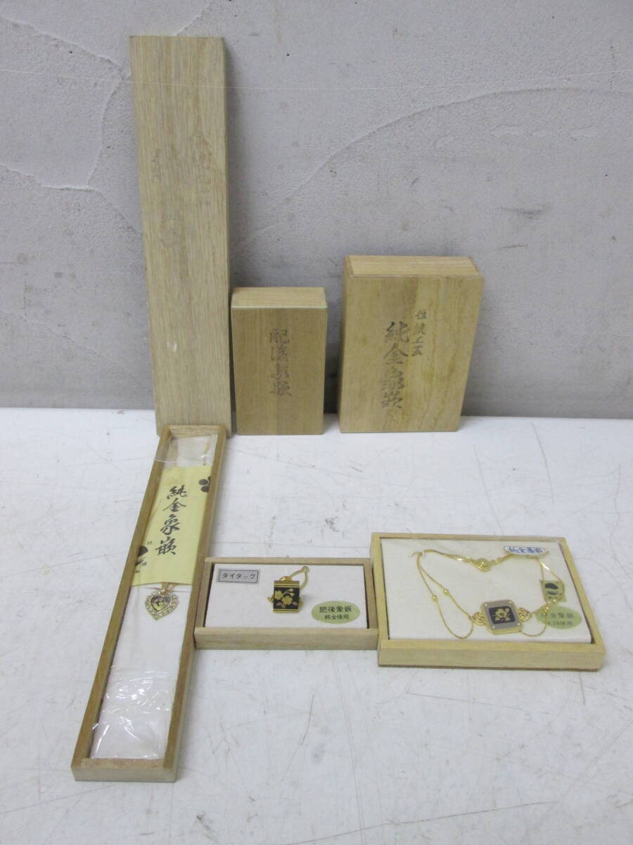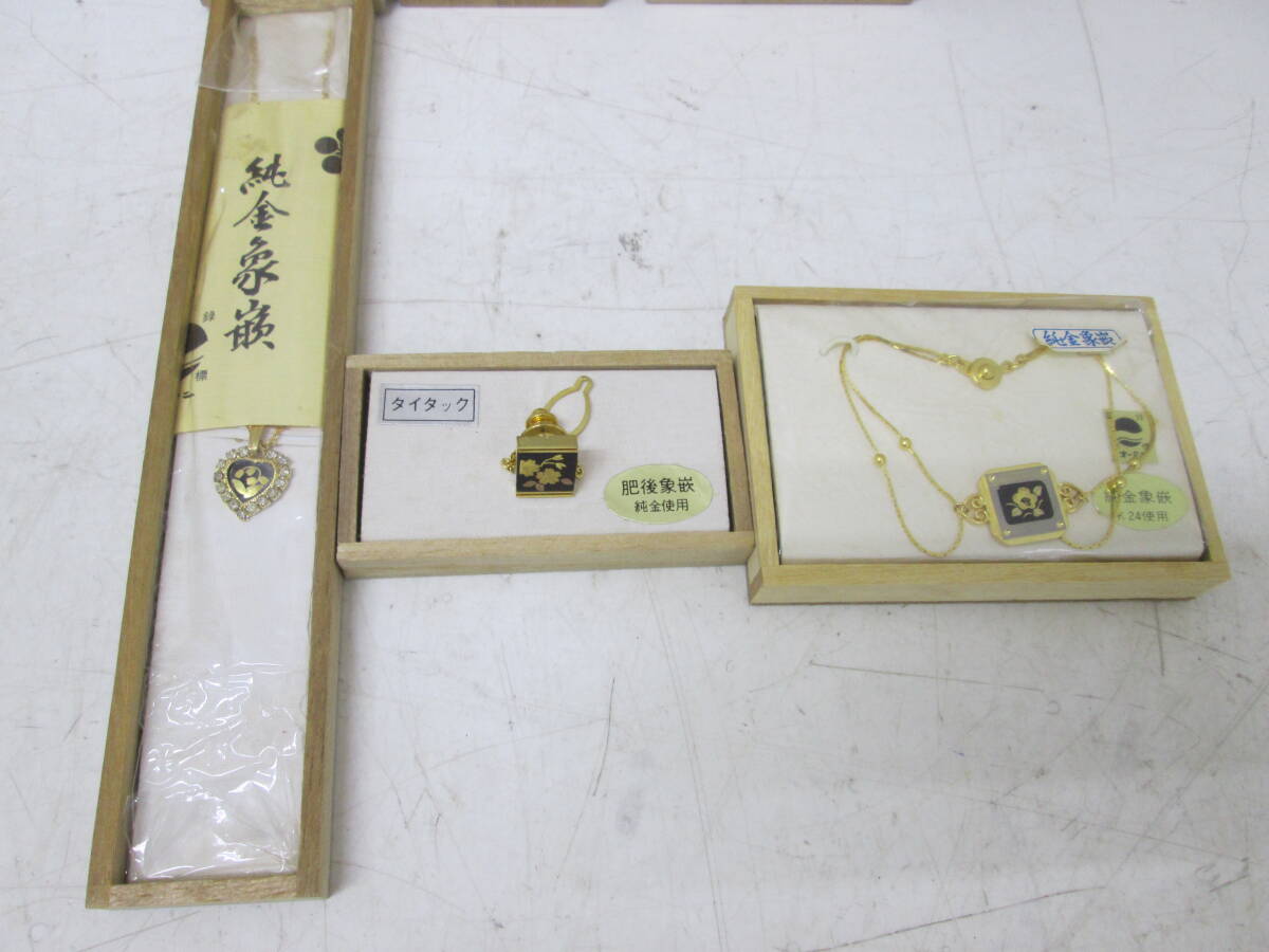 (88)☆純金象嵌 ペンダント ハート すずらん ブレスレット つばき タイタック 四角 サクラ 肥後 K24 オータニ 未使用