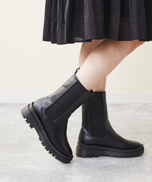 キーワード:ブーツ レディース サイドゴア チャンキーヒール ヒール ミドル 秋 冬